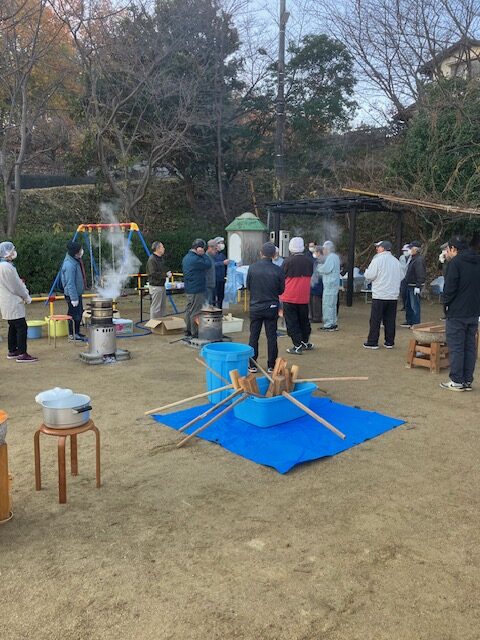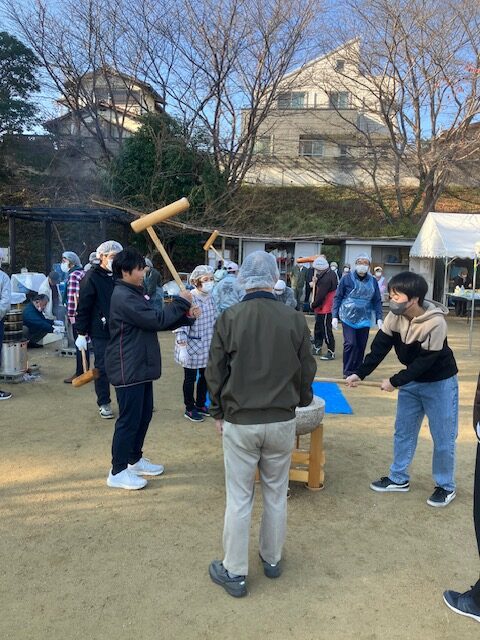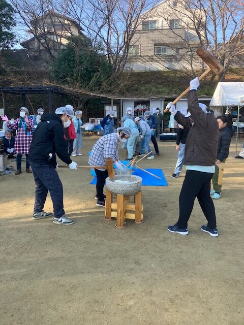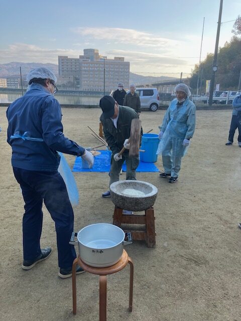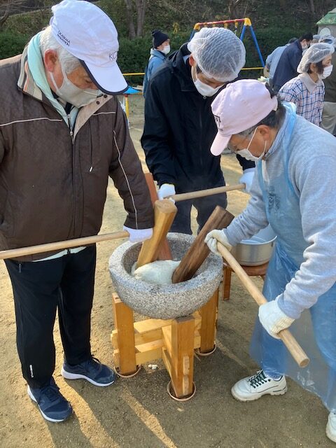令和7年12月7日(日)午前9時30分から、福寿会、婦人部、なかよし会及び町内会役員が力を合わせ、田又池公園で餅つき大会を開催しました。