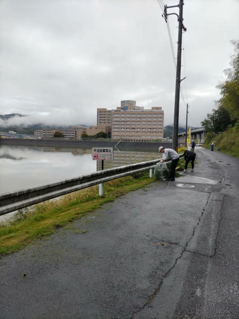小雨の中での作業のため、高所作業や内田川の清掃は中止し、全体的な草木の伐採や溝掃除を行いました。