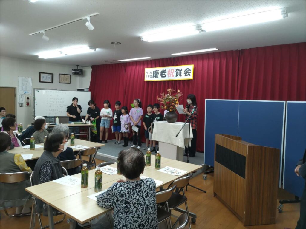 主催者代表、町内副会長挨拶の後は子供たちがおじいちゃん、おばあちゃんへの感謝の言葉を述べたり歌ってマジックショー・銭太鼓で遊ぼうなどが披露されとてもにぎやかな楽しい敬老祝賀会でした。