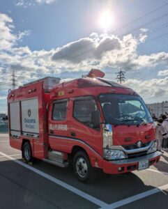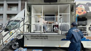 排水センターでは岡山市消防局の方が来られて