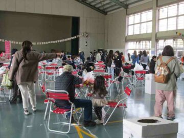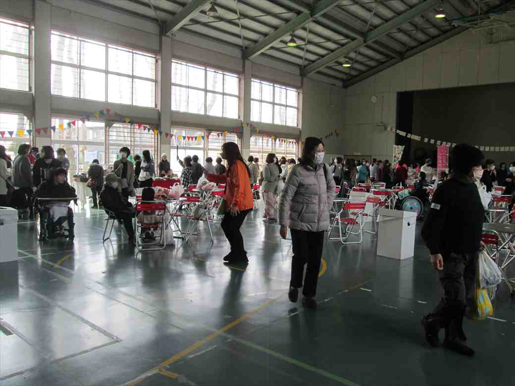 とても暖かい日で春の近さが感じられる日でした。体育館とつどいのばフォレストでの開催で、お店は密にならないようにゆったりと配置されており、お客さんも沢山こられました。
