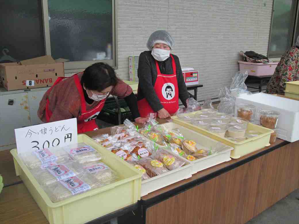 手作りうどん、豆腐、あげ、てづくりの味噌、甘酒、山菜おこわなどもあります。いつものようにテンペコロッケは人気です。