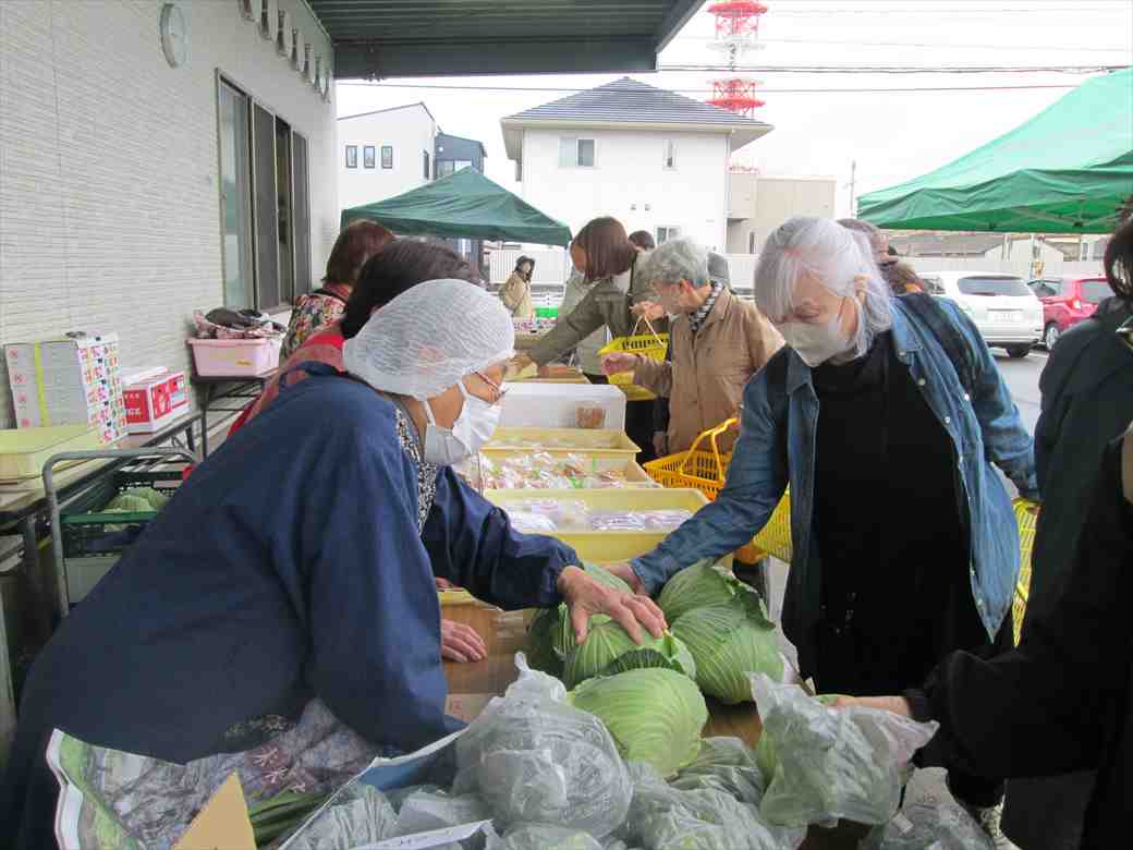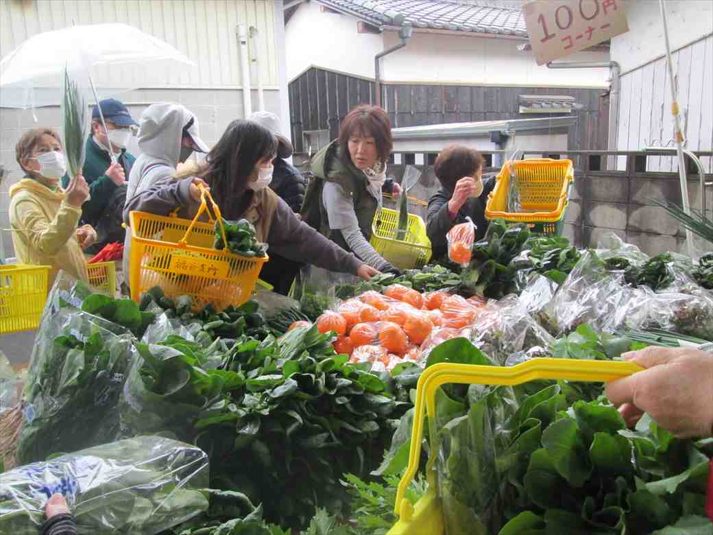 皆さん新鮮な野菜などでかごいっぱいにしっかり買い物をして帰られます。