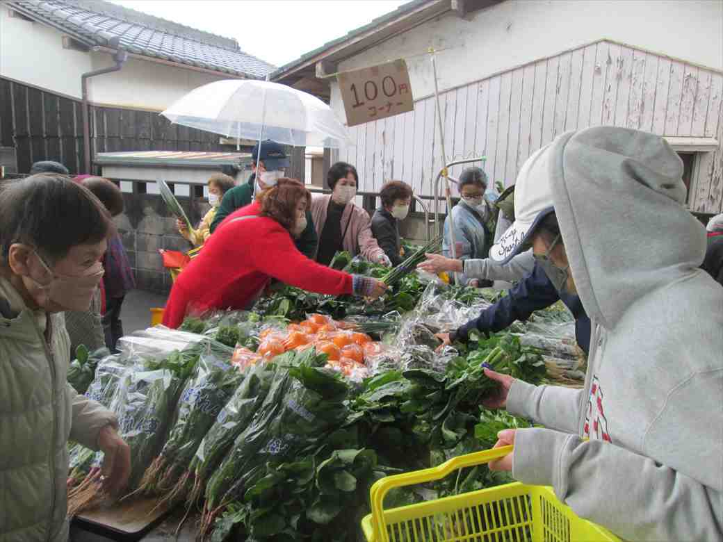 朝から小雨の寒い朝市ですが、お客さんは沢山こられました。今日もJAのお母さん方の明るい声で元気をもらい、皆さん笑顔で楽しく買い物をされていました。
