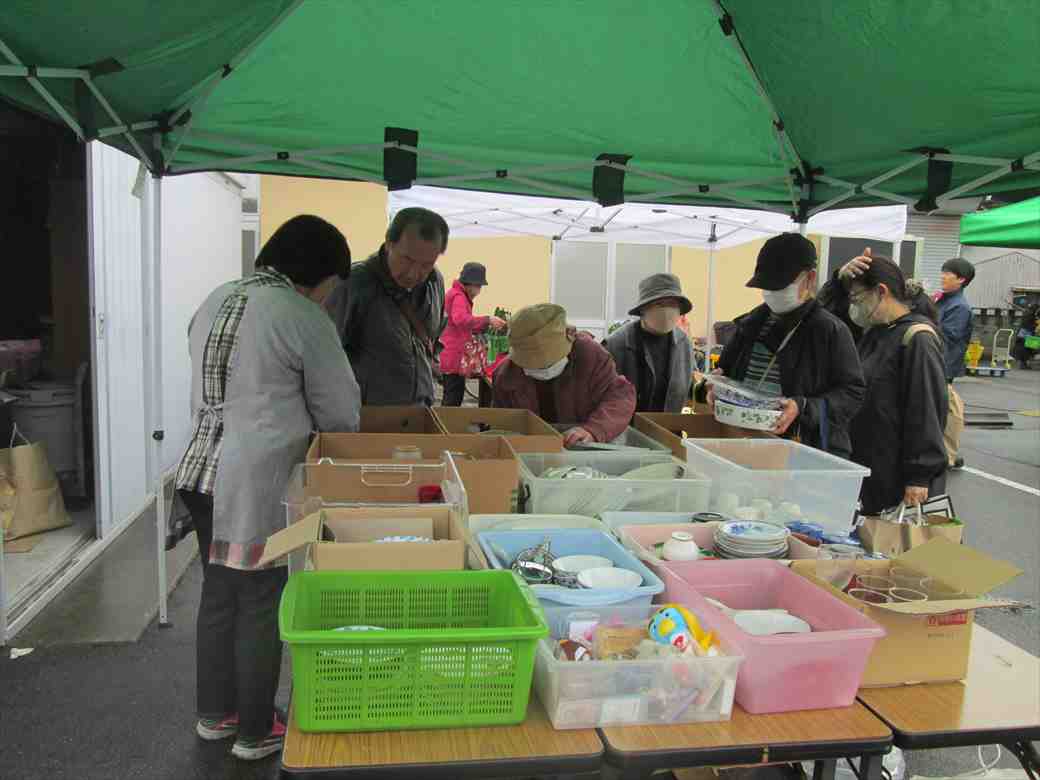 会場の端には「もったいない市」のコーナーが設けられており、婦人部の方がたが、持ち寄られたお皿や茶わん、湯飲みなどが無料で持ち帰りできるようになっており、こちらも人気です