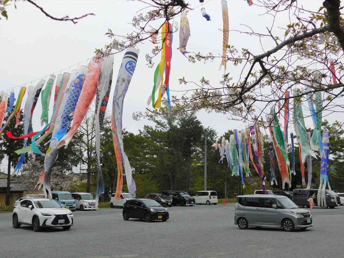 鯉のぼり 桜 アマナ カタバミ オクザリス テッポウユリ キズイセン ラッパスイセン リビングストンシ゛ヒナギク