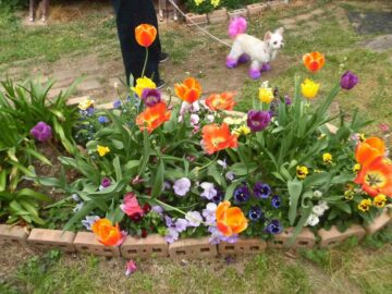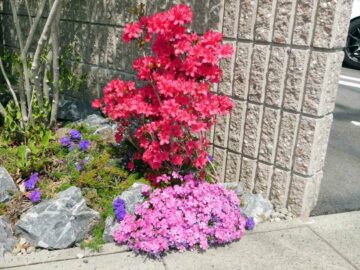 鯉のぼり 芝桜 ハナミズキ ショウブ ツツジ 花壇