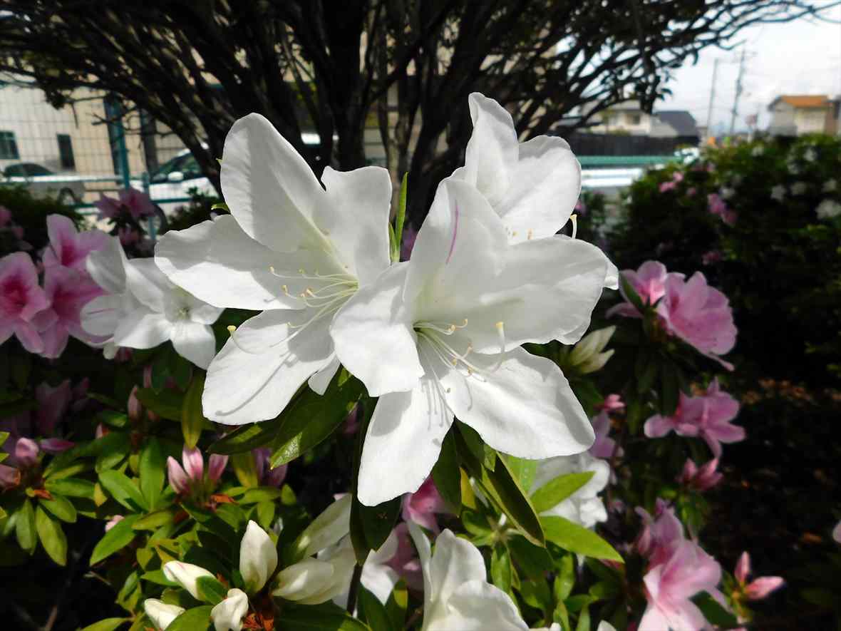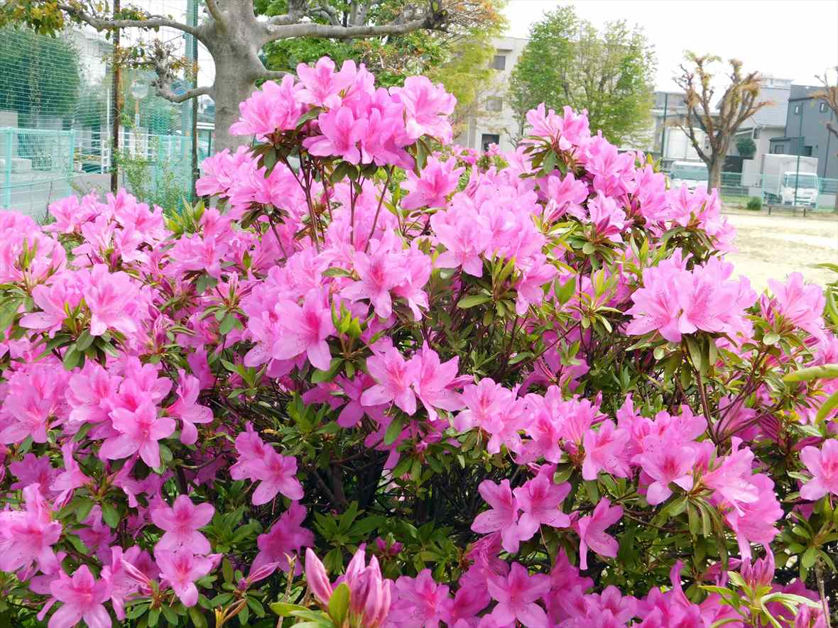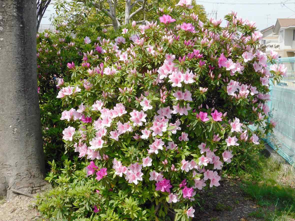 サツキ モッコウバラ ワスレナグサ レンゲツツジ ヤグルマギク モッコウバラ 花壇 ハナミズキ キショウブ ニワナズナ ヤナギラン