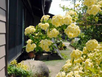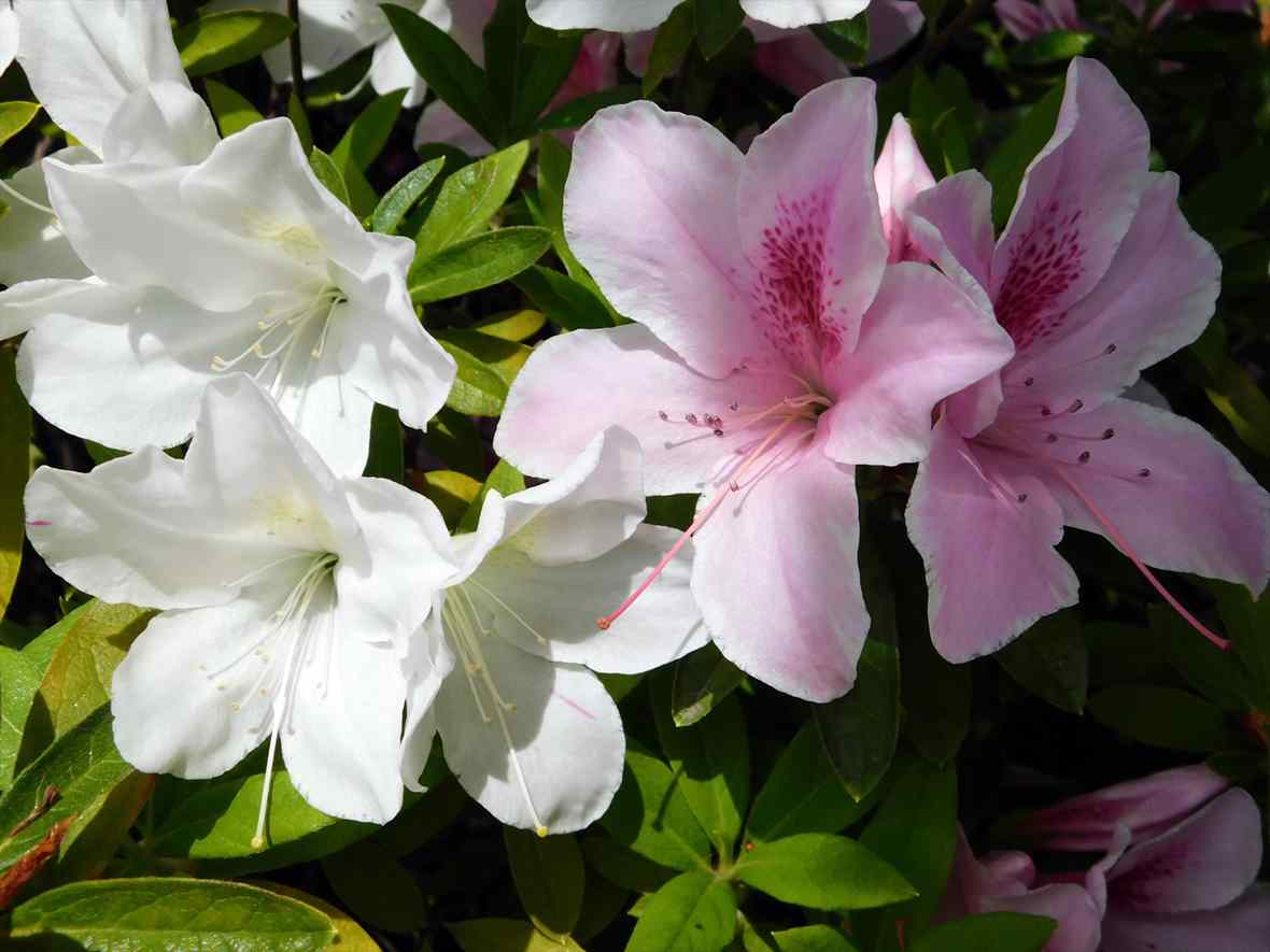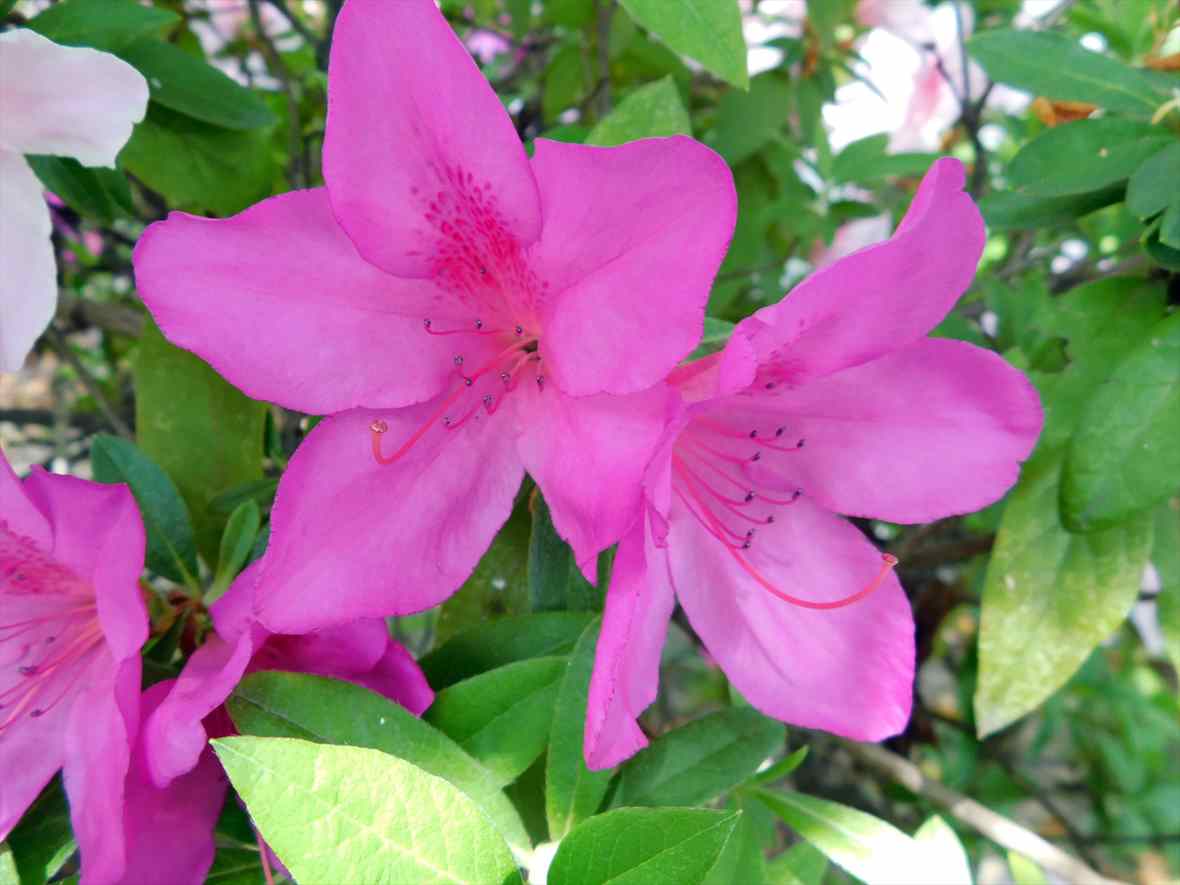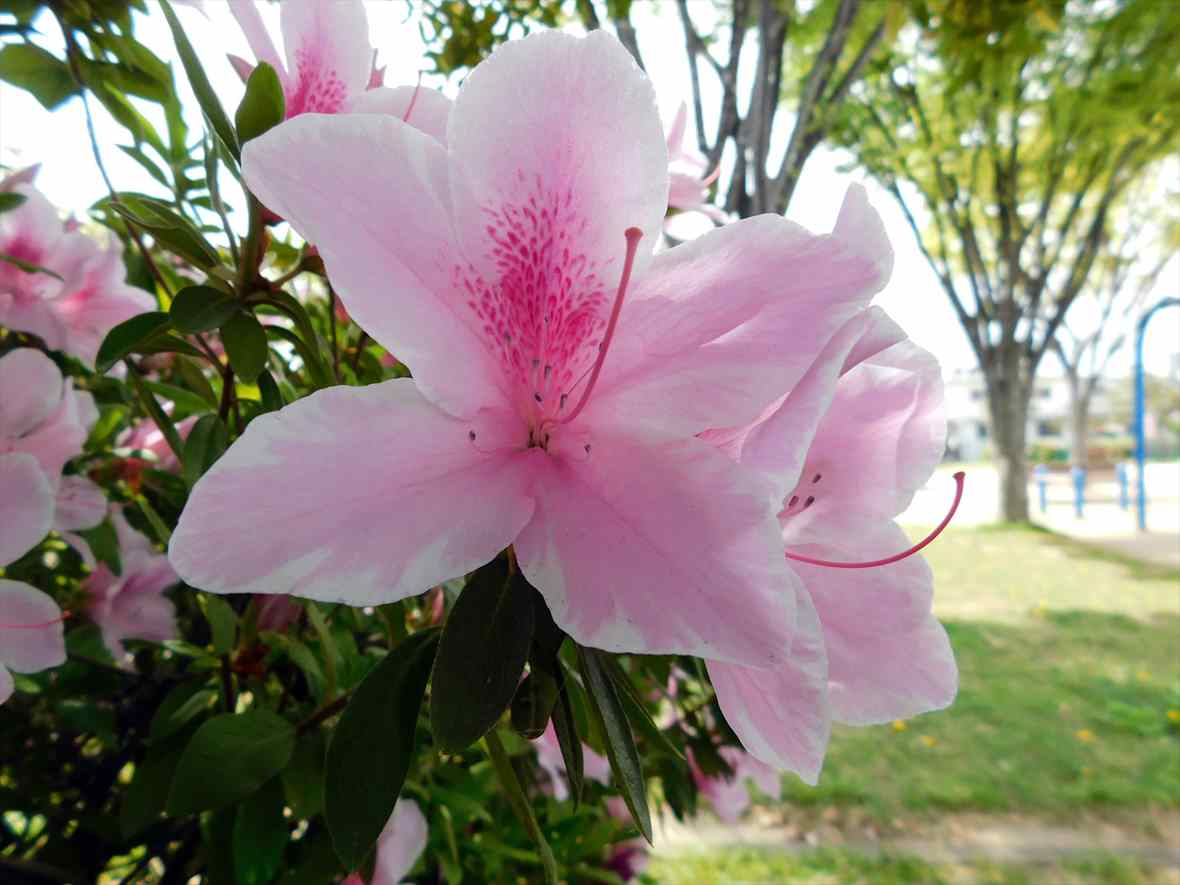 サツキ モッコウバラ ワスレナグサ レンゲツツジ ヤグルマギク モッコウバラ 花壇 ハナミズキ キショウブ ニワナズナ ヤナギラン