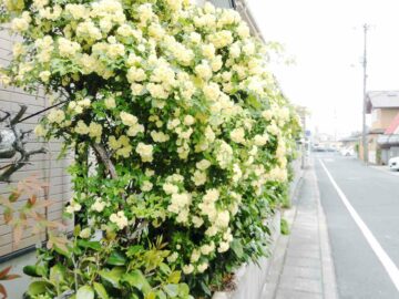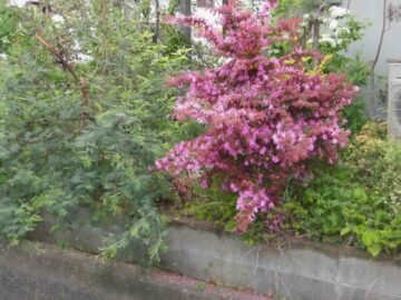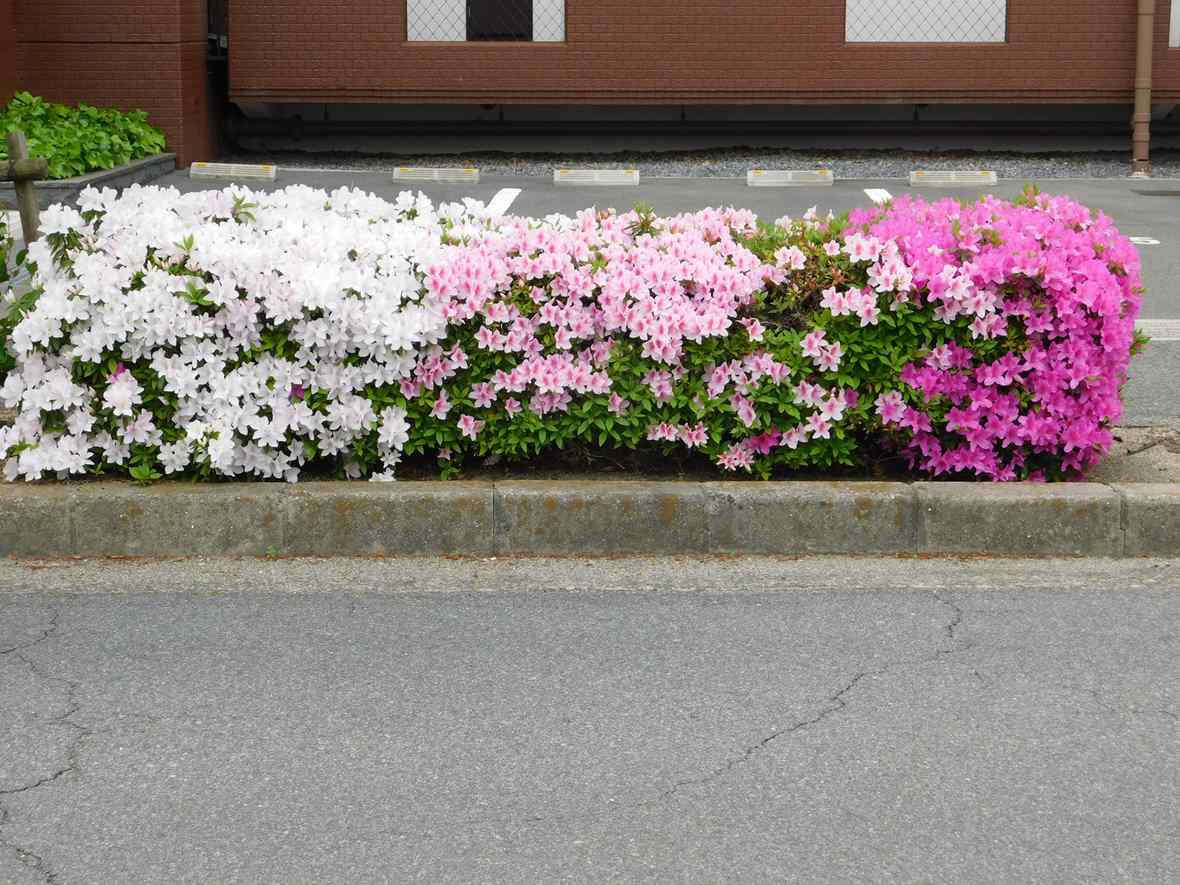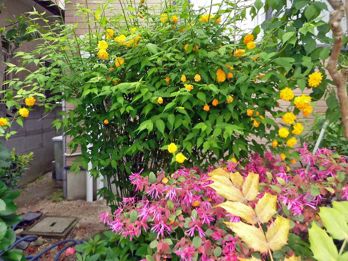 ハナミズキ ベニバスモモ モッコウバラ 花壇 サツキ キショウブ ニワナズナヤナギラン