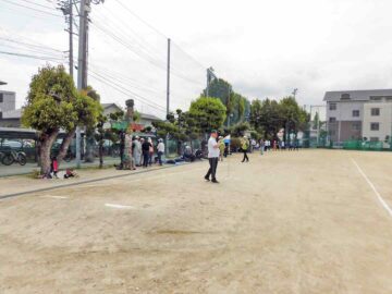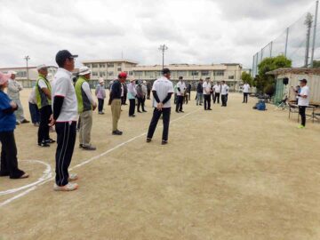 前日雨が降ったがグランドは乾いていたので使える状態でした。天気は、曇空で熱くなく最適な状態で大会日和となり、多くの方が参加しまた。