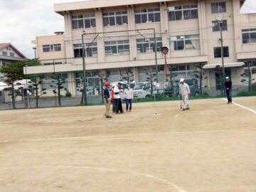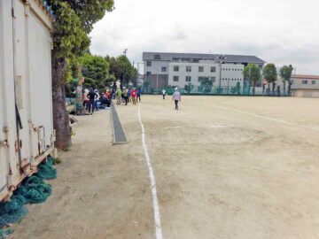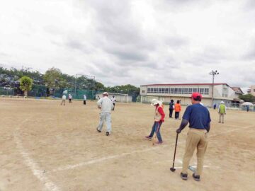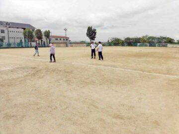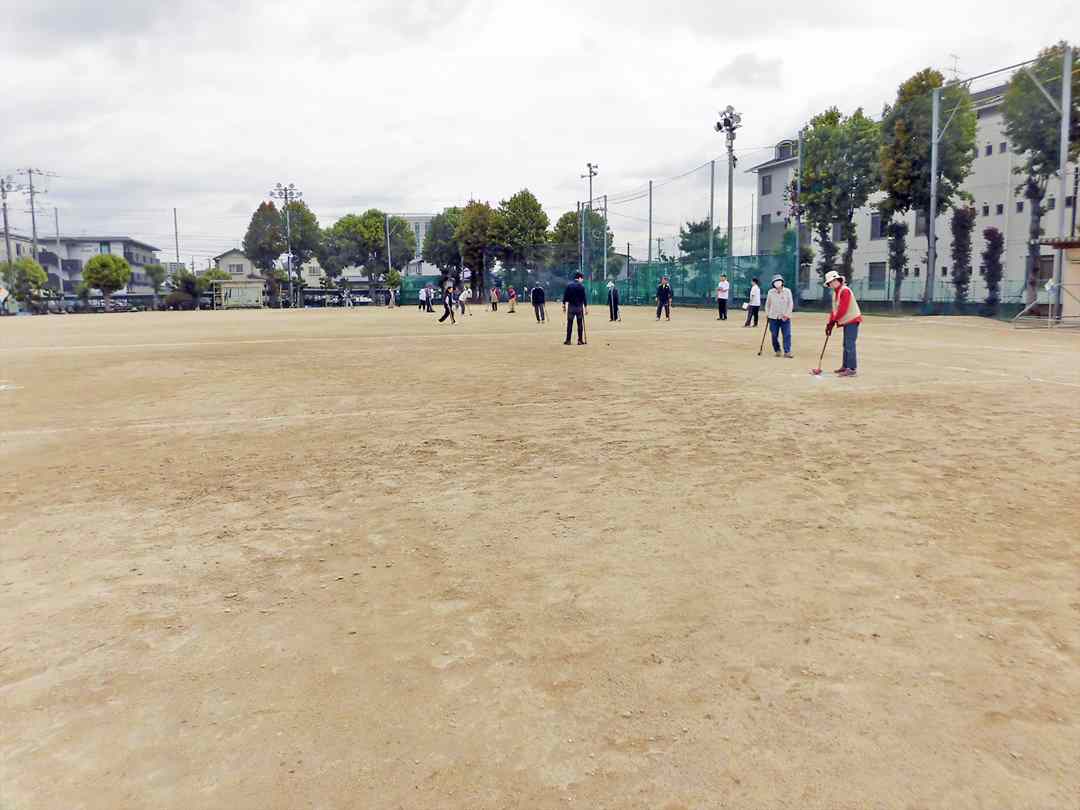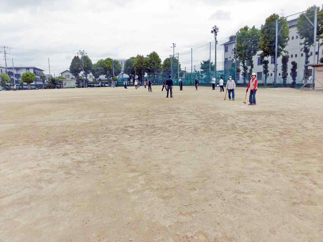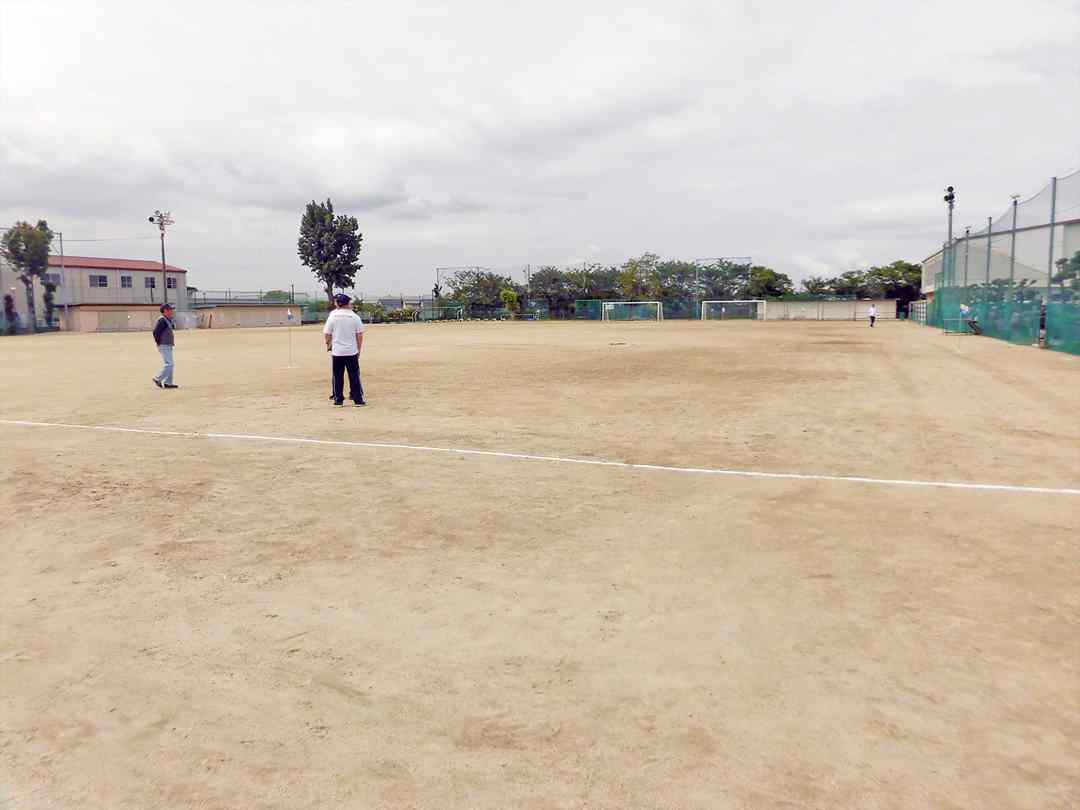 学校のグランドなので土の凸凹があり球が真っすぐ走るのか心配です。グルーブ内では、いつもの打ち方とは違う工夫しないと、球が走らず曲がるので手加減するようにとアドバイスしていました。
