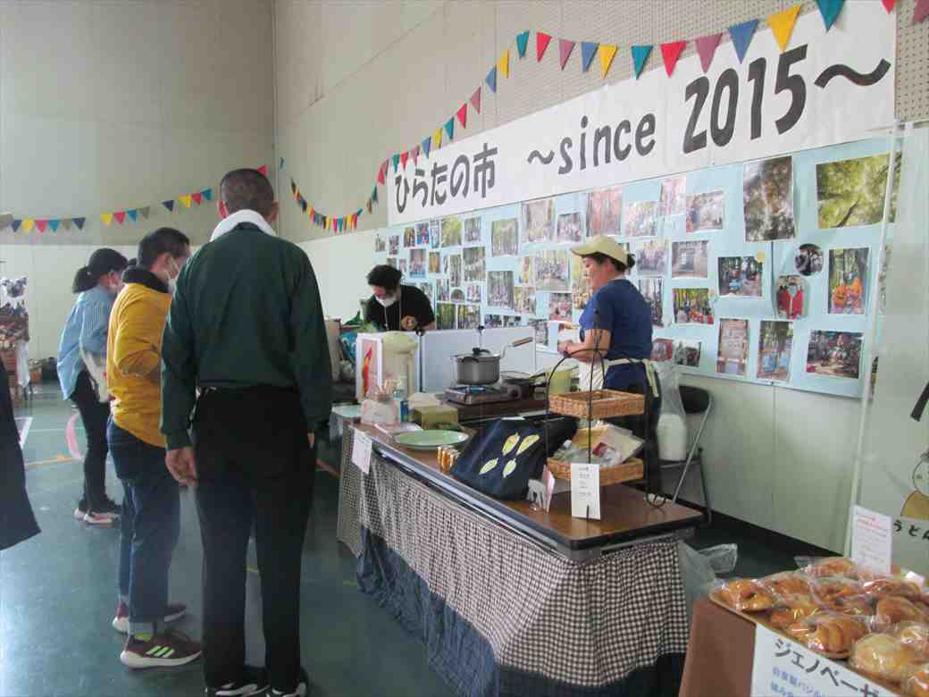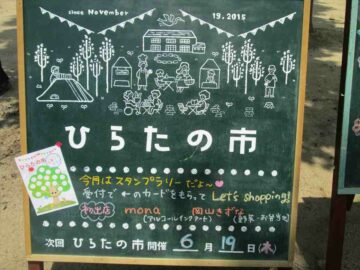 今回はスタンプラリーで5店舗以上で買い物をしてくじを引き色々な賞品をいただきました。イートインのお客さんも増えお客さんも沢山来られています。ひらたの市の看板も新しくなりました。