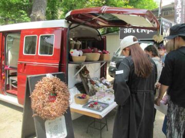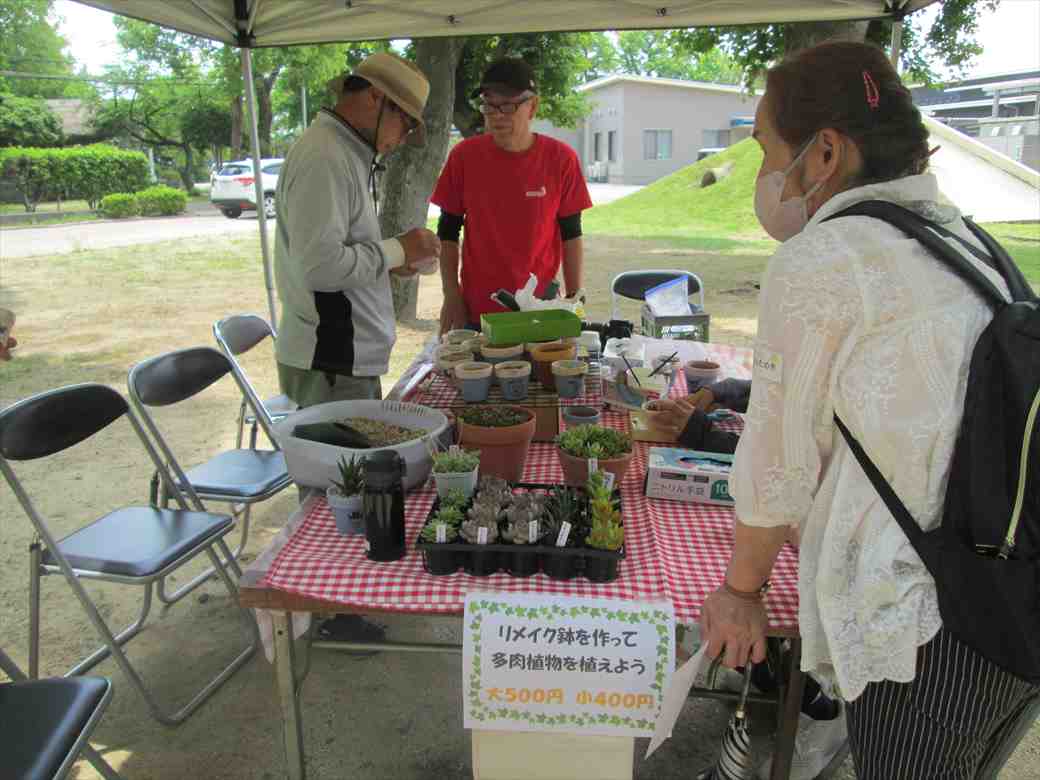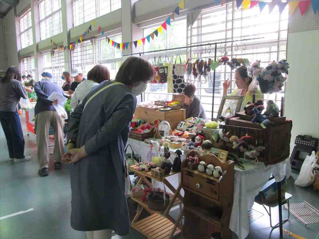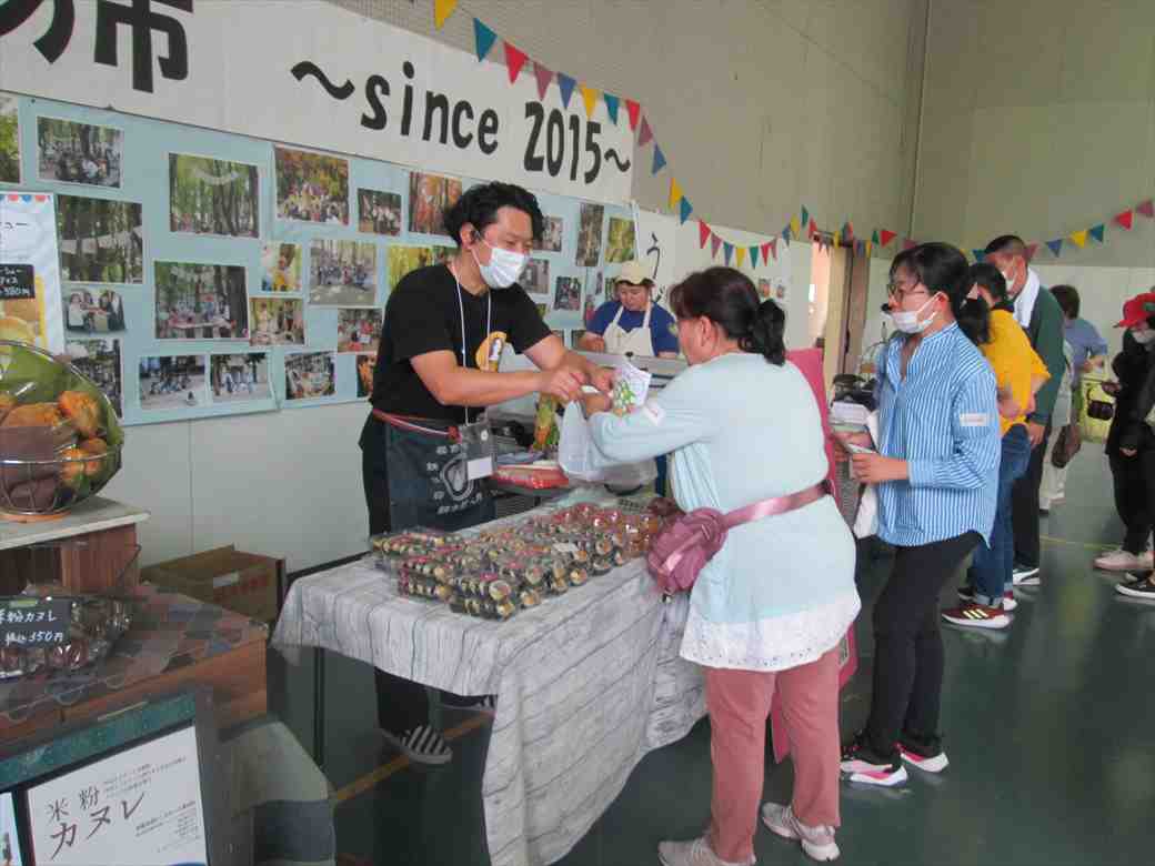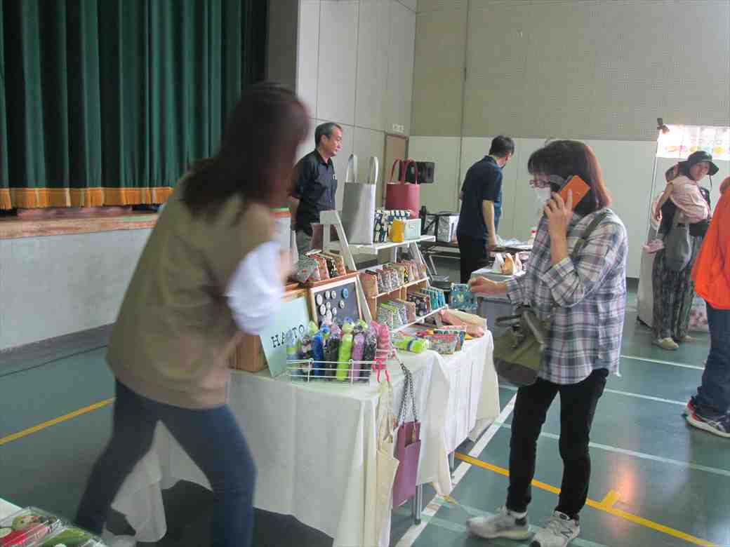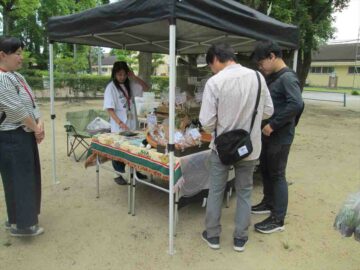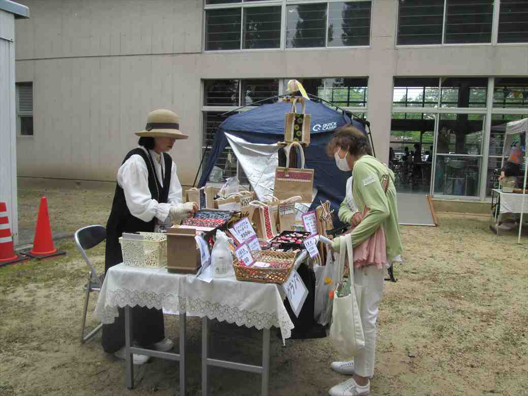 夏の暑さが感じられる暑い日でした。体育館と杜での開催で、お店は密にならないようにゆったりと配置されており、お客さんも沢山こられました。