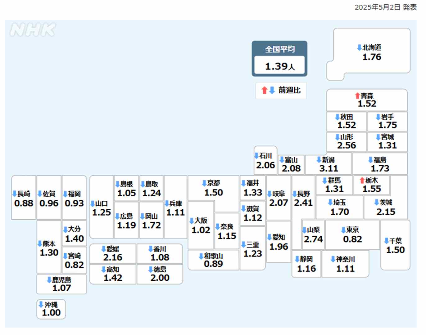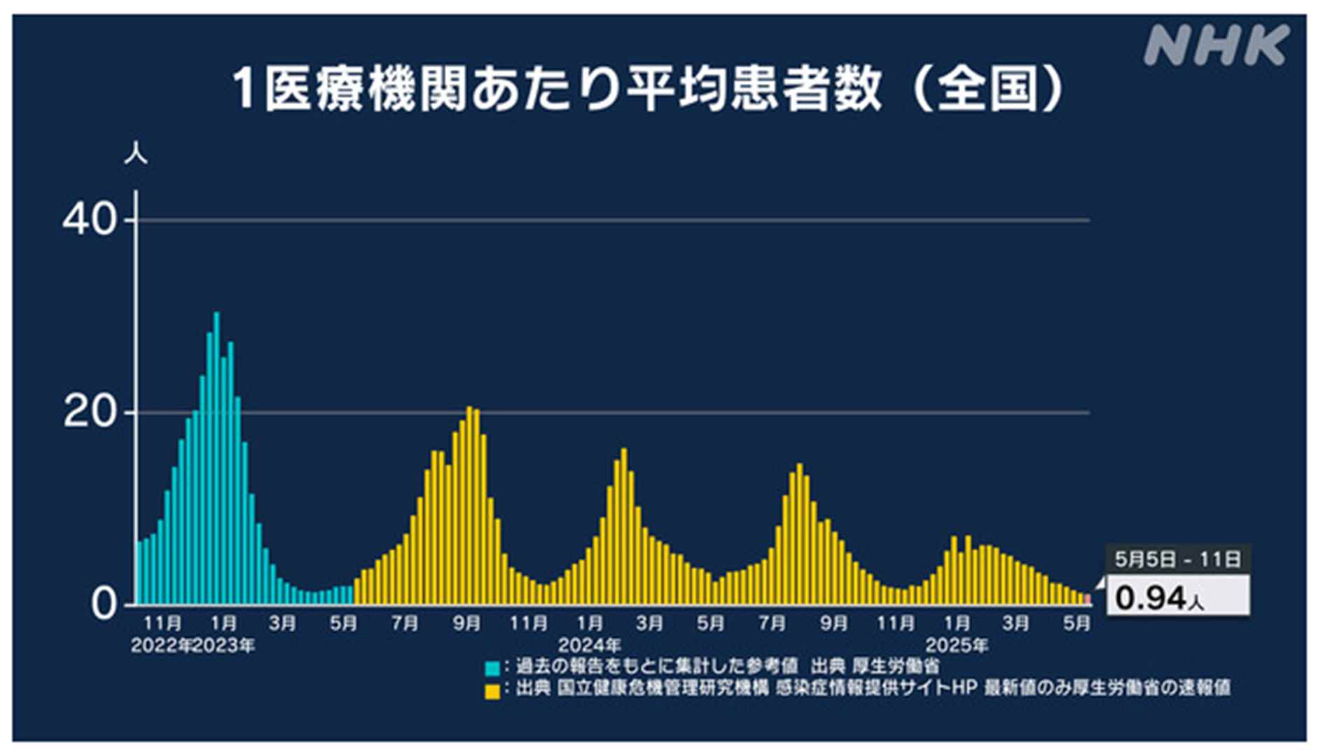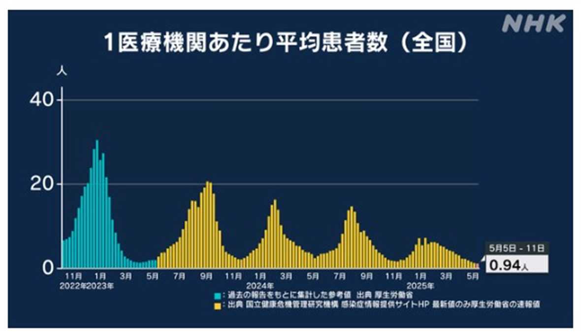 新型コロナウィルス感染症に関する情報リンク〜2025.05.12〜更新098〜定点把握〜全国4,227人岡山43人:5類移行後全国・岡山県共に最低値を更新する!