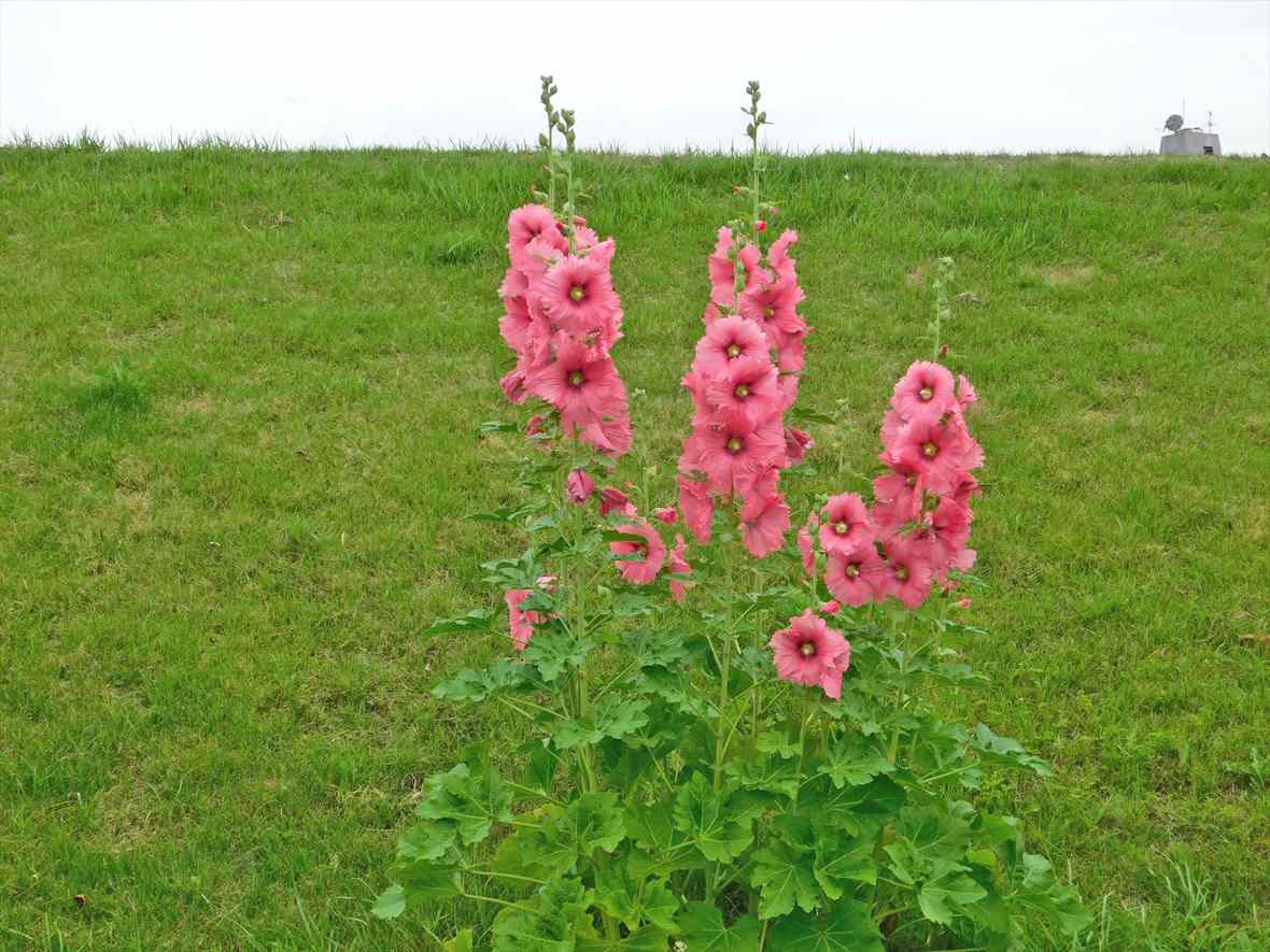 8372 岡山市    笹ヶ瀬川土手  タチアオイ