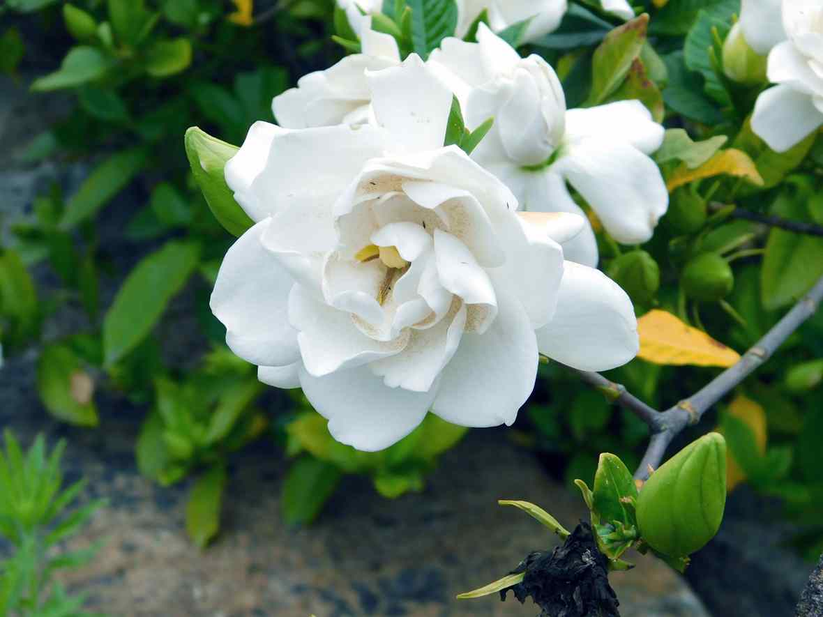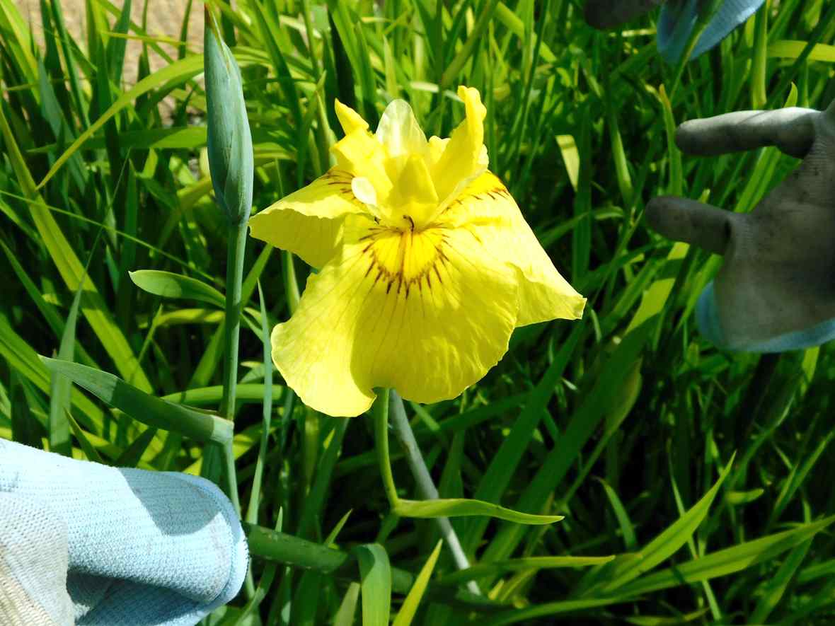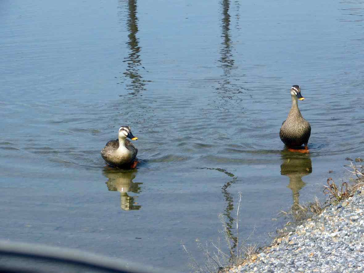 ショウブ アジサイ ヤグルマギク テンニンカ クチナシ ガザニア カモ ゴイサギ