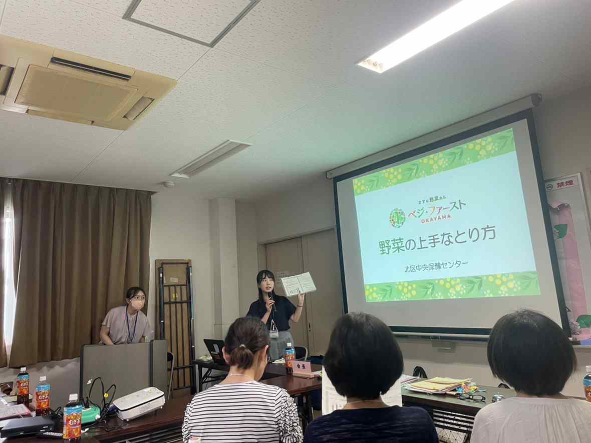 役員約50名と保健師さん 講師の栄養士さんそして 岡山大学の実習生4名の参加。