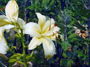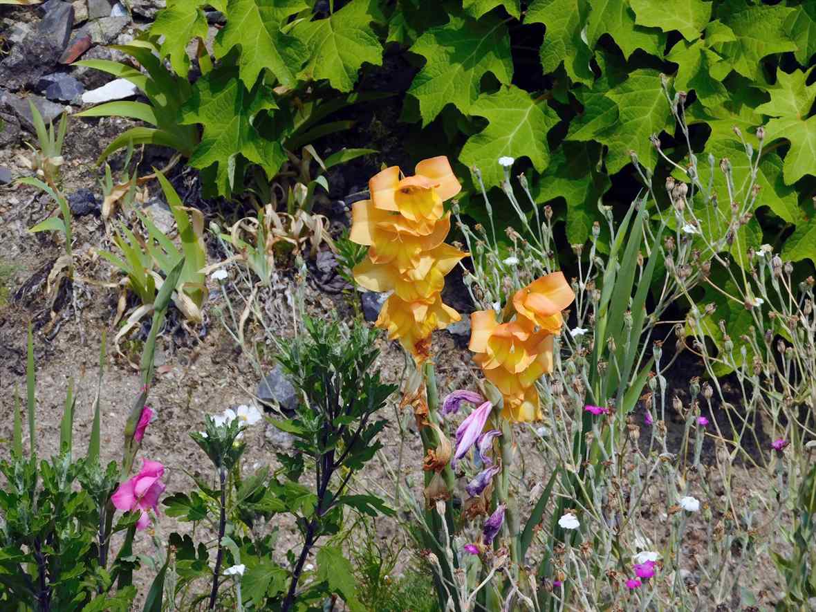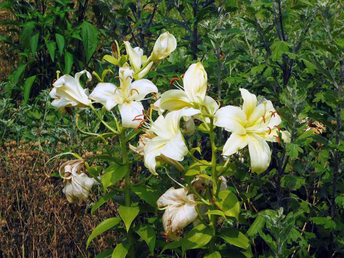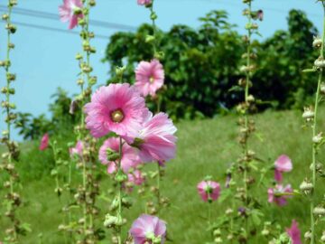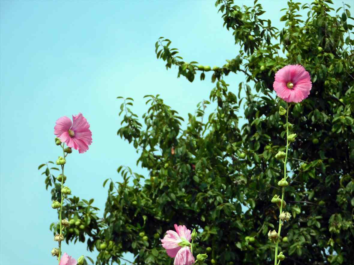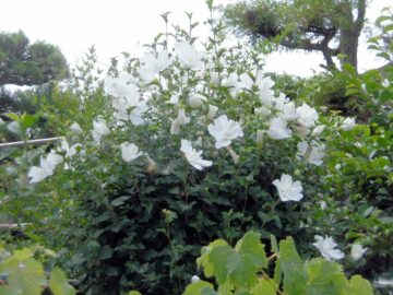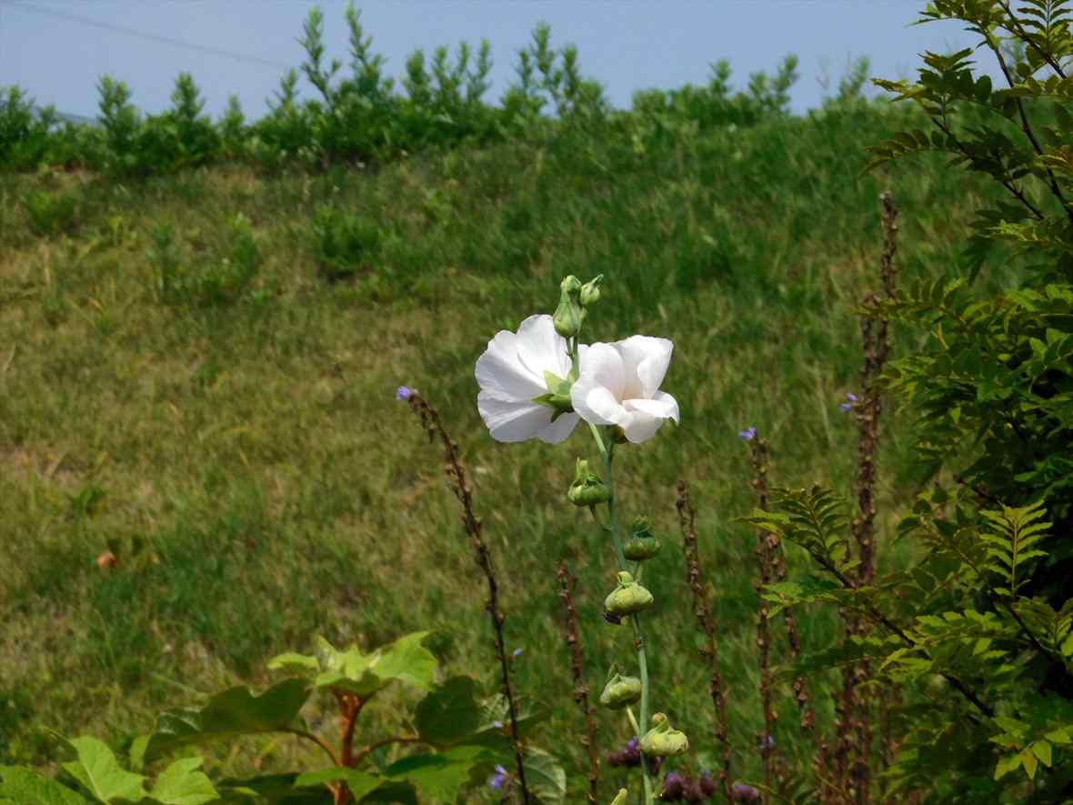 ハイビスカ キョウチクトウ ノウゼンカズラ 五重の塔 ライラック タチアオイ ムラサキクンシラン タチアオイ セイヨウウスユキソウ ユウガオ 白アジサイ テッポウユリ