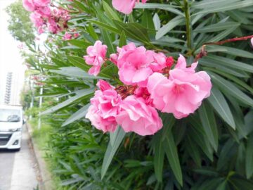 夏の景色など10・・~ ハイビスカス キョウチクトウ ノウゼンカズラ 五重の塔 ライラック タチアオイ ムラサキクンシラン タチアオイ など ~(532)