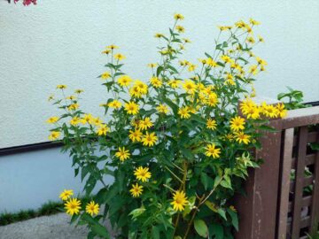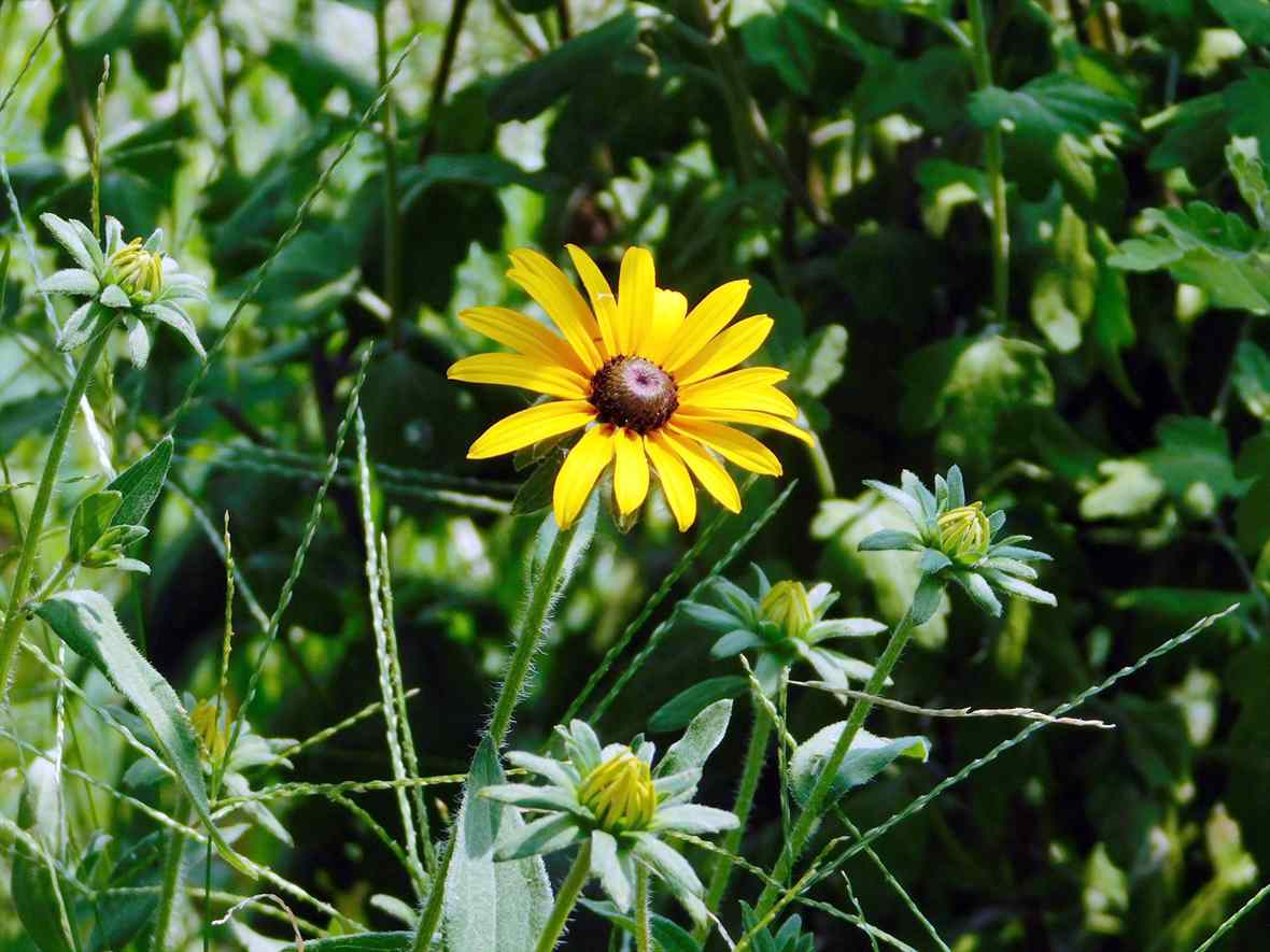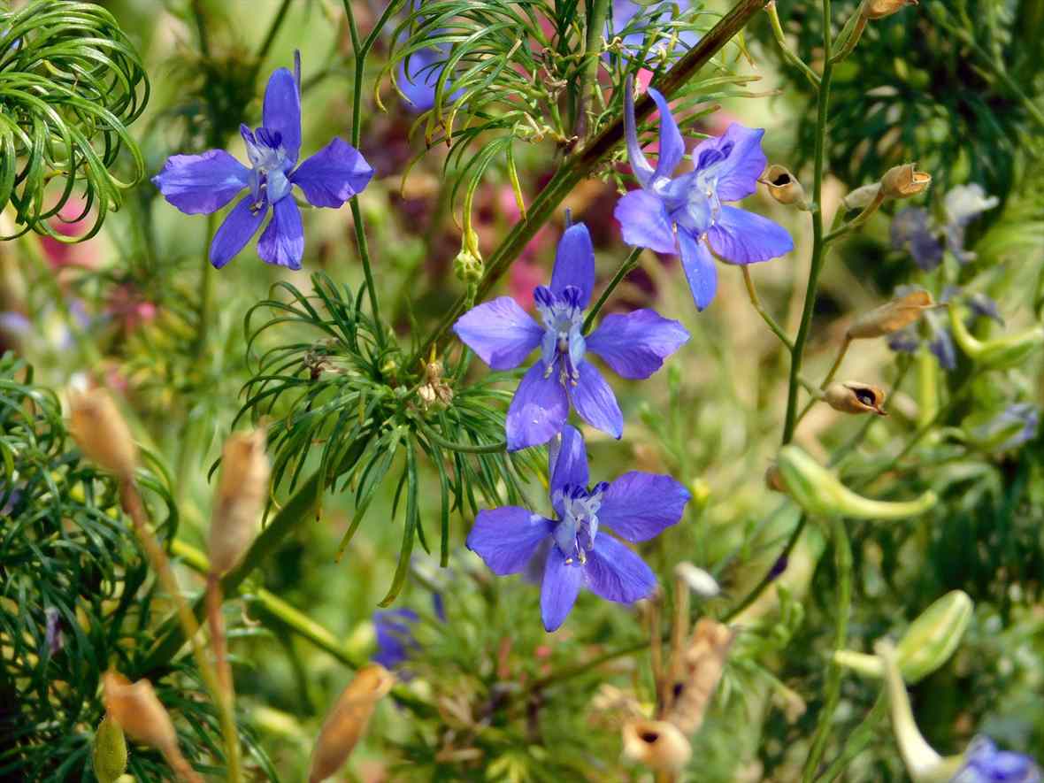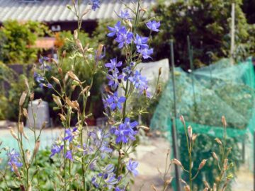 デルフイニウム ルドベキア・ヒルタ オオハンゴンソウ ムラサキクンシラン サルスベリ 笹が瀬川土手除草 笹が瀬川