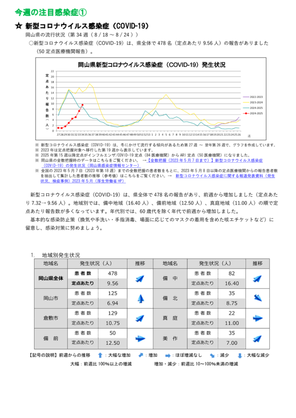 岡山県感染症週報2025年 34週 (8月18日~8月24日)
