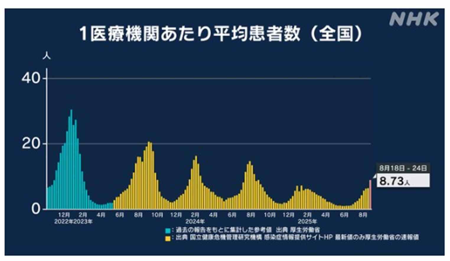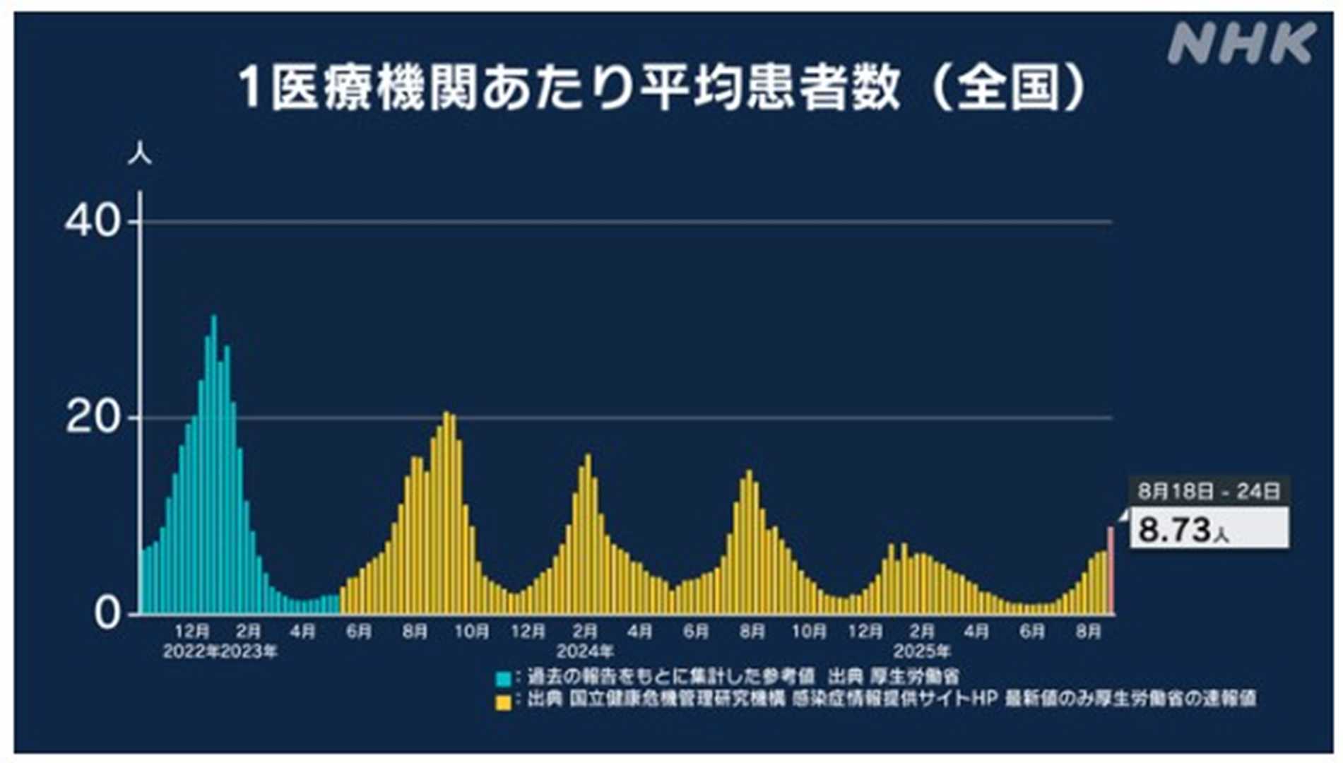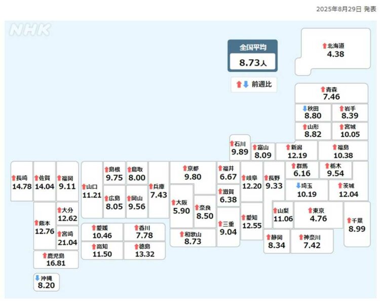8月25日~8月31日 新型コロナの感染状況・(1医療機関あたり)NHK