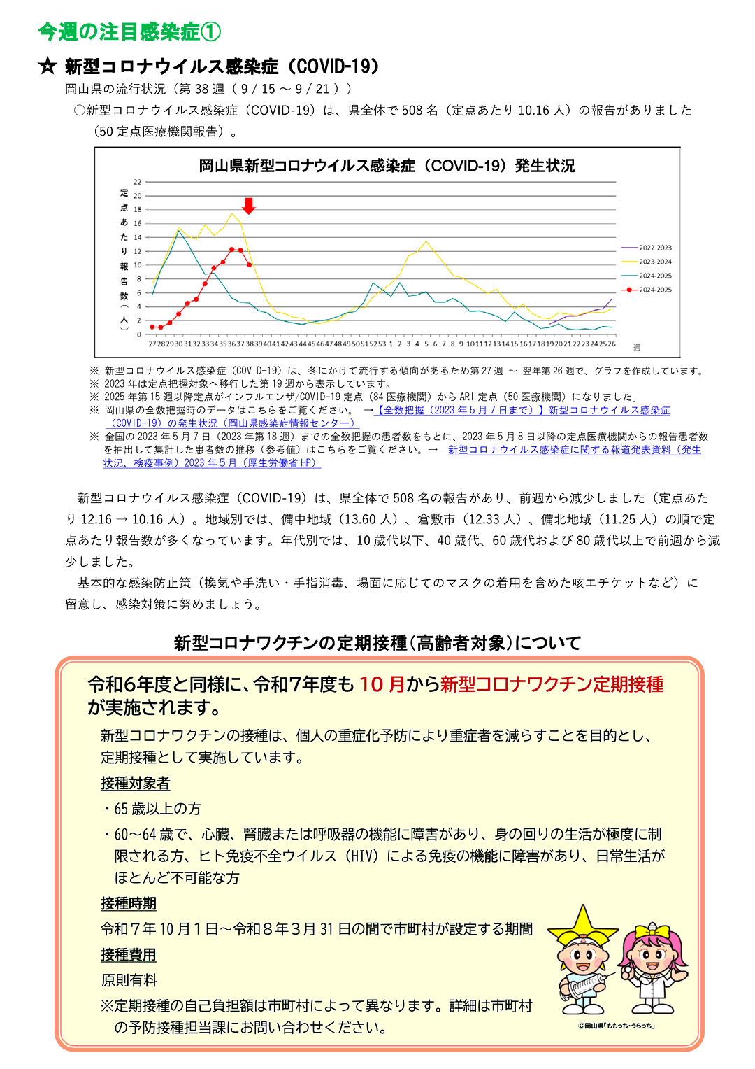 岡山県感染症週報2025年 38週 (9月15日~9月21日)
