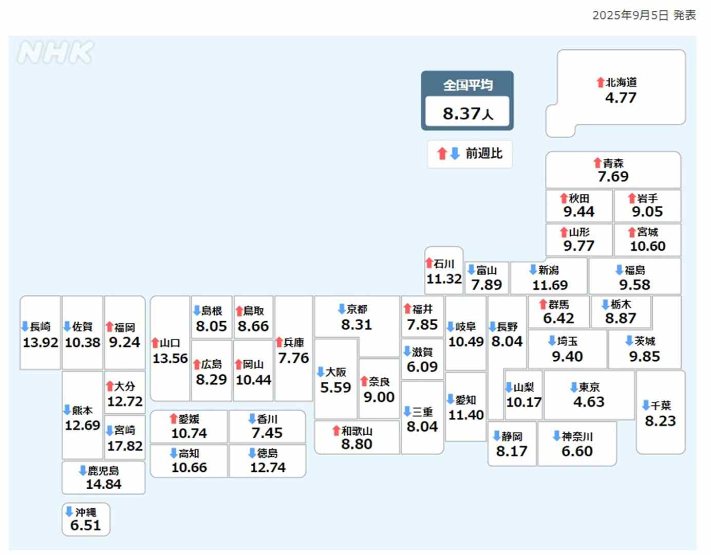 岡山県感染症週報2025年 37週 (9月8日~9月14日)