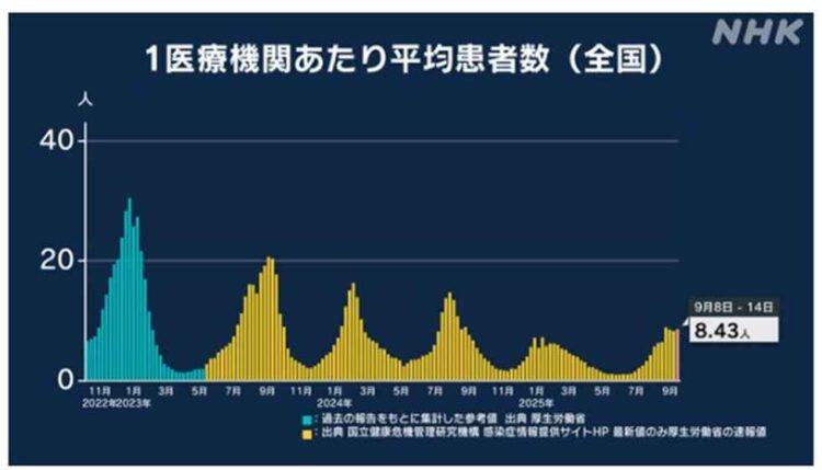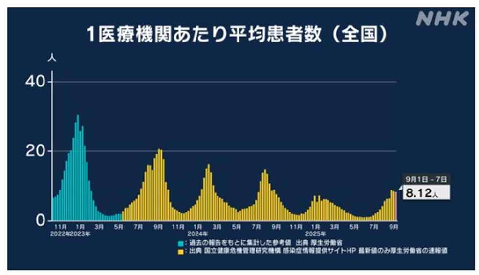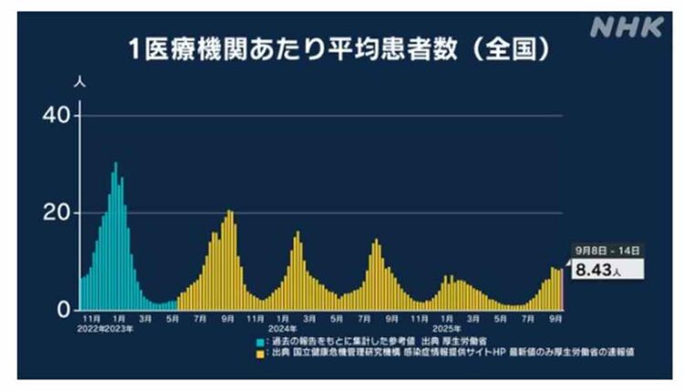 9月8日~9月14日 新型コロナの感染状況・(1医療機関あたり)NHK