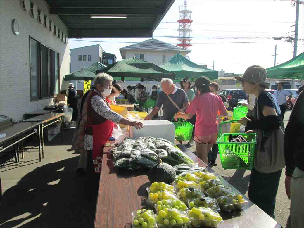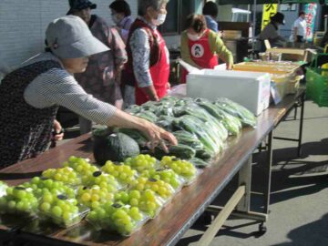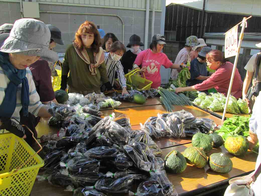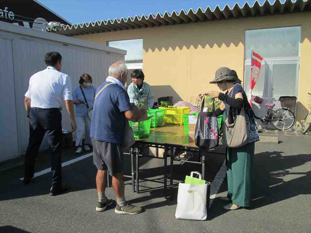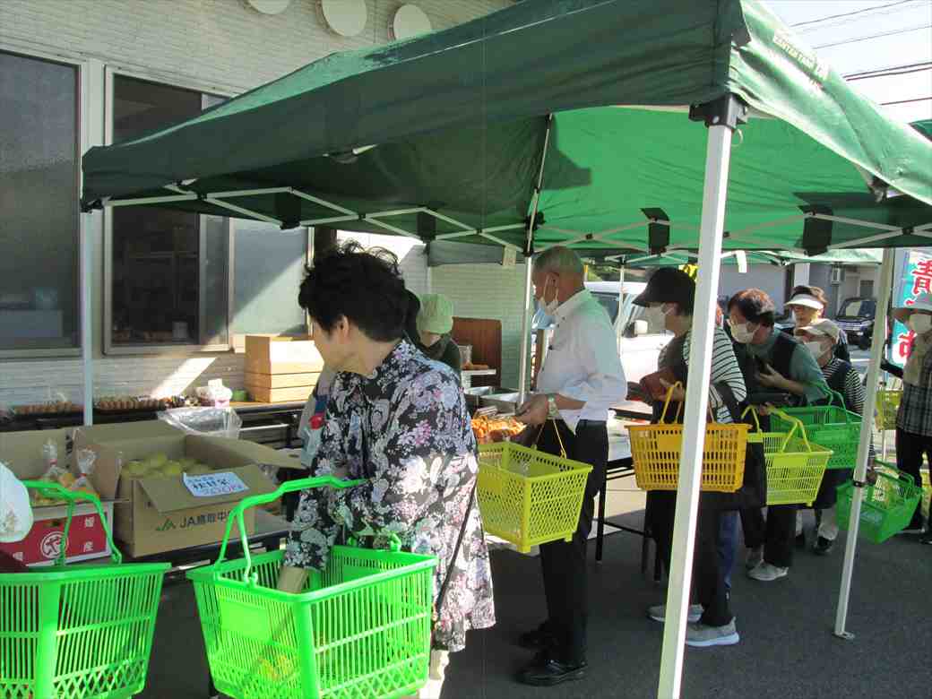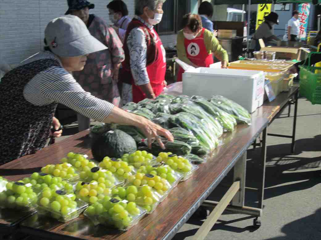 初秋とはいえまだまだ暑い朝市でしたが、お客さんも沢山こられました。今日もJAのお母さん方の明るい声やJAの男性職員の優しい気遣いで元気をもらい、皆さん笑顔で楽しく買い物をされていました。
