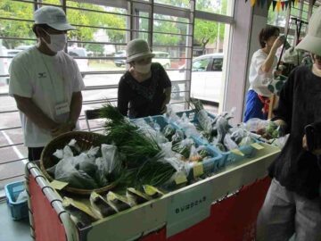 野菜は、ピーマン、なす、かぼちゃ、ニラなどが出ています。果物ではぶどう、マスカットが出ており、とても人気です。