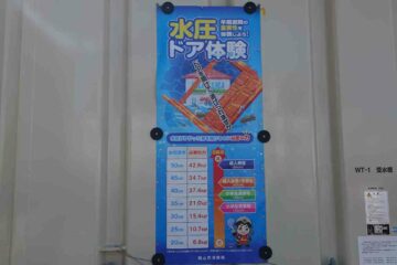 3.水圧ドア体験:浸水時の扉にかかる水圧を30㎝と50㎝で体験