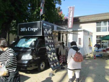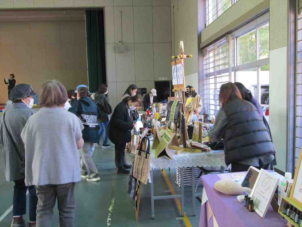 会場は杜と体育館の両方でした。お店は密にならないようにゆったりと配置されております。