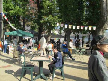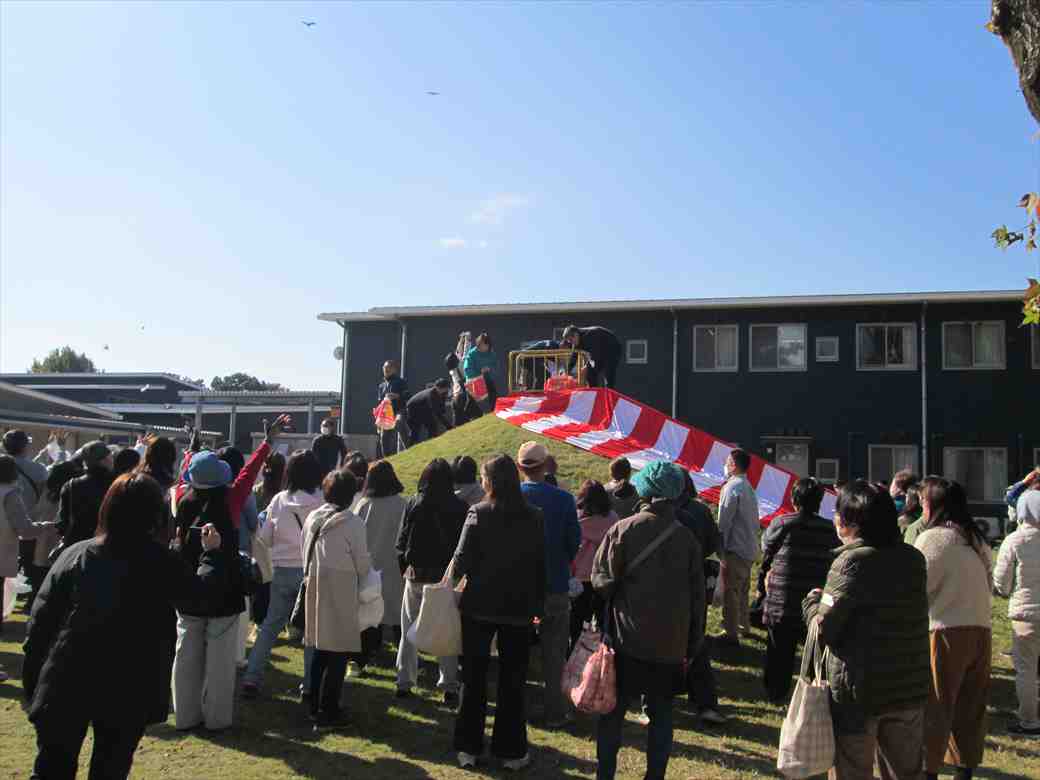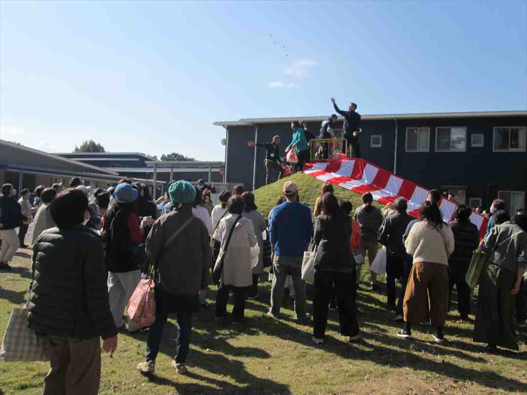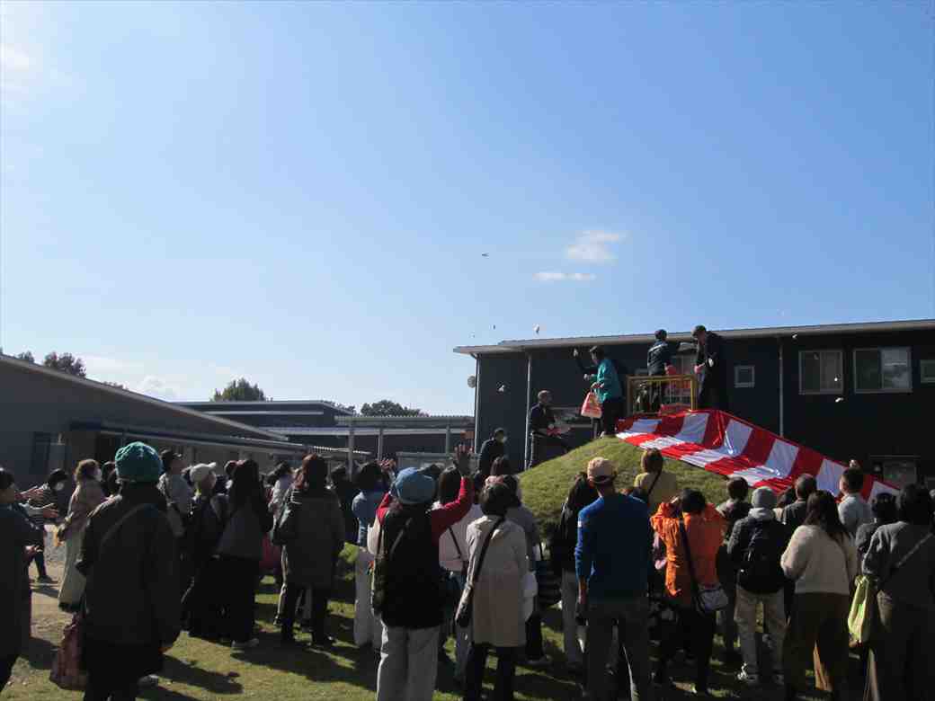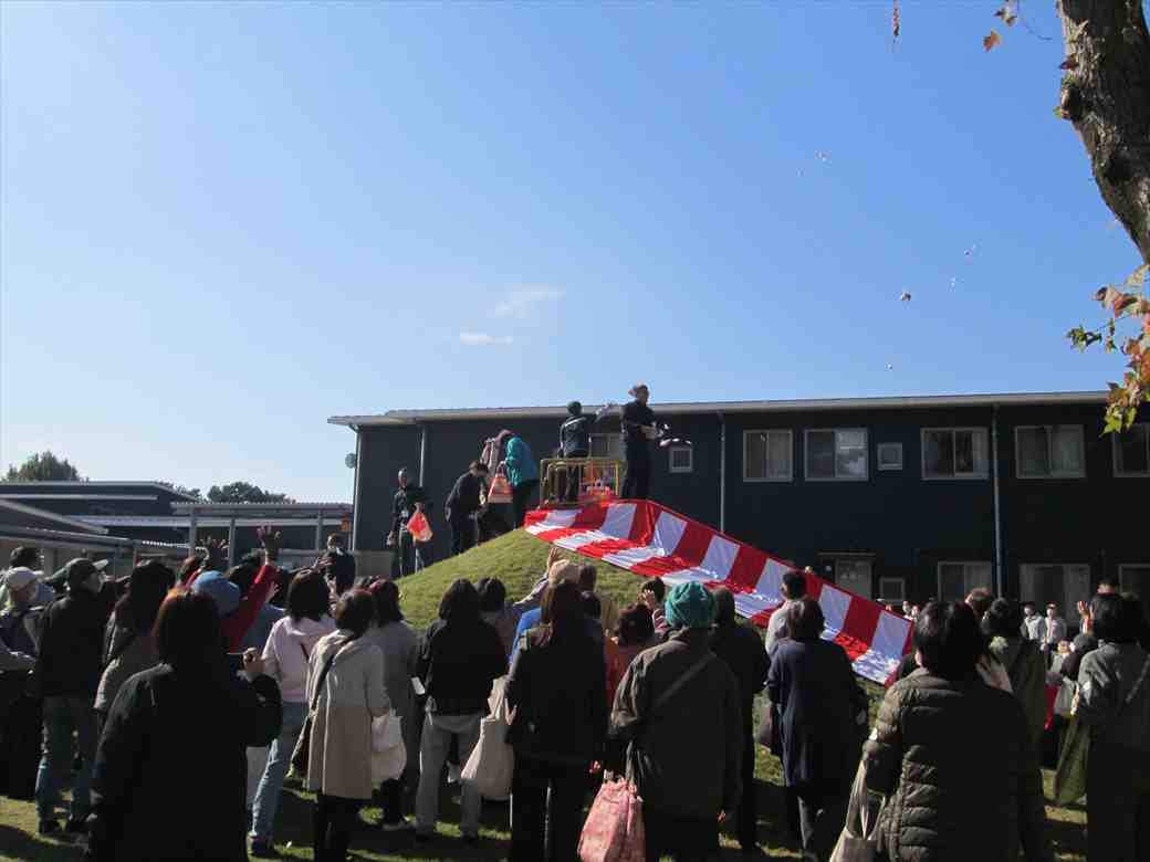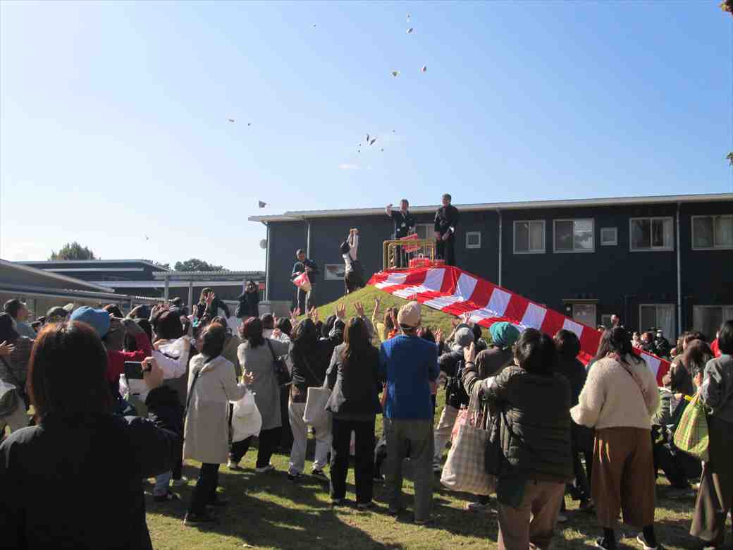 少し寒い季節となり、杜の木陰もひんやりとして寒く感じるようになりましたが、今月もたくさんお客さんに来ていただきました。今年も紅葉がきれいに色付き始めております。今回は10周年記念として「もちなげ」がありました。皆さん嬉々として餅投げを楽しんでいました。また宝探しのゲームもありました。