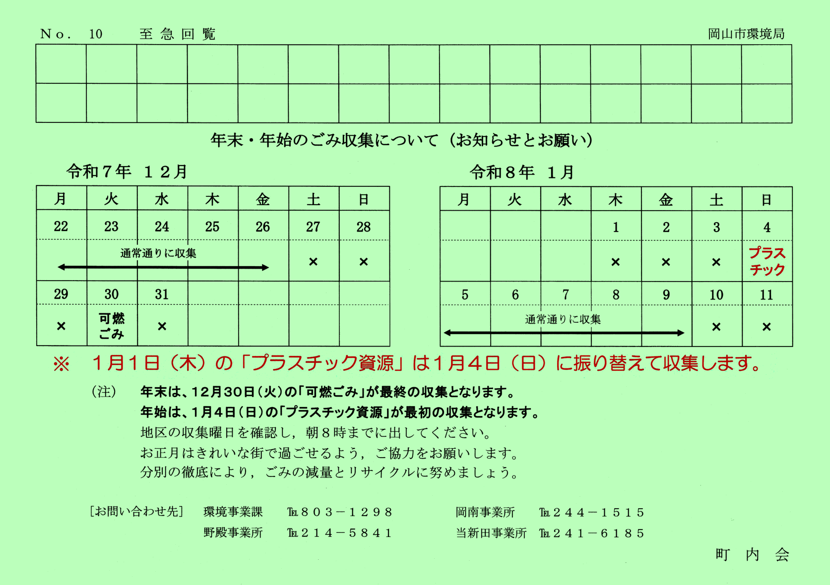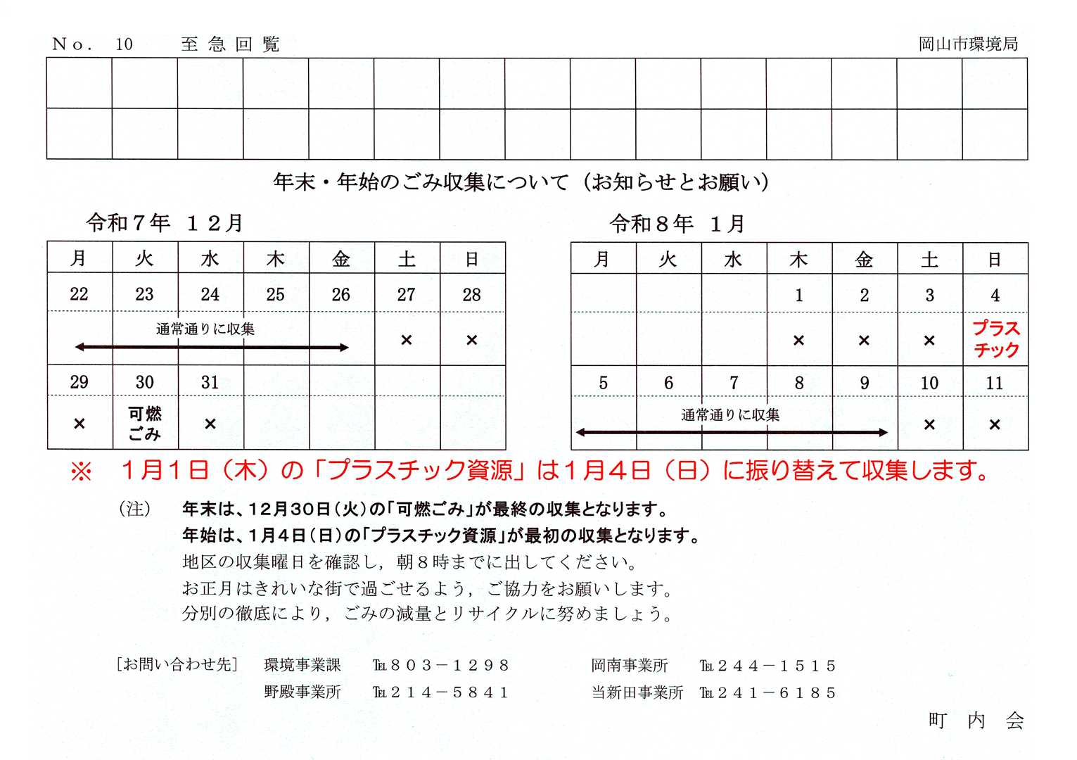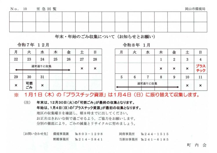 岡山市から町内会にお送りしている配布物は、以下のとおりです。