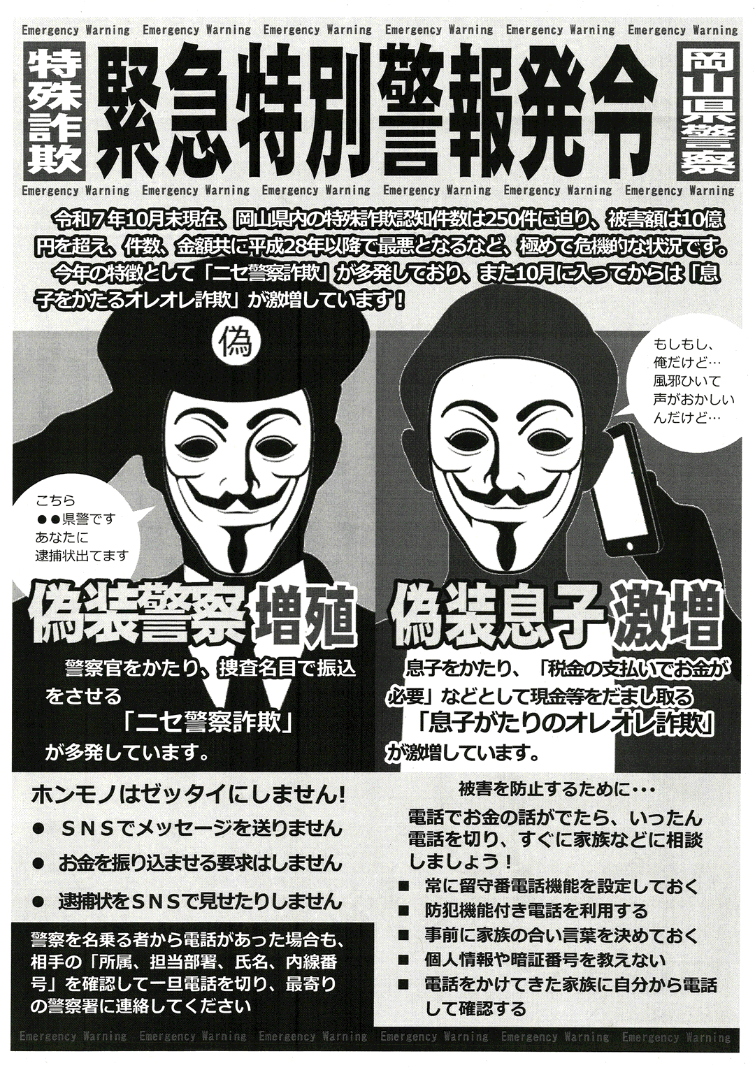 全戸配布」:全戸に配布するもの。広報紙「市民のひろば おかやま」は除く。