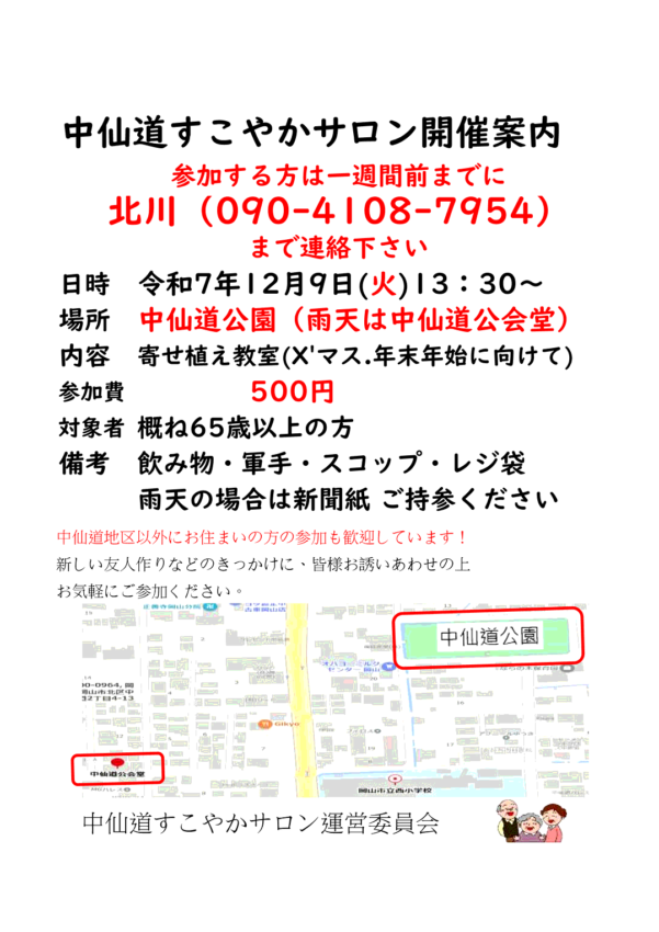 「中仙道すこやかサロン」開催のご案内 12月9日(火)~”寄せ植え教室” を実施します~