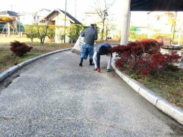 御南公園集会所周辺の草取り落ち葉集め西浦公園内の草取り落ち葉集め町内会を2班に分けて行いました。