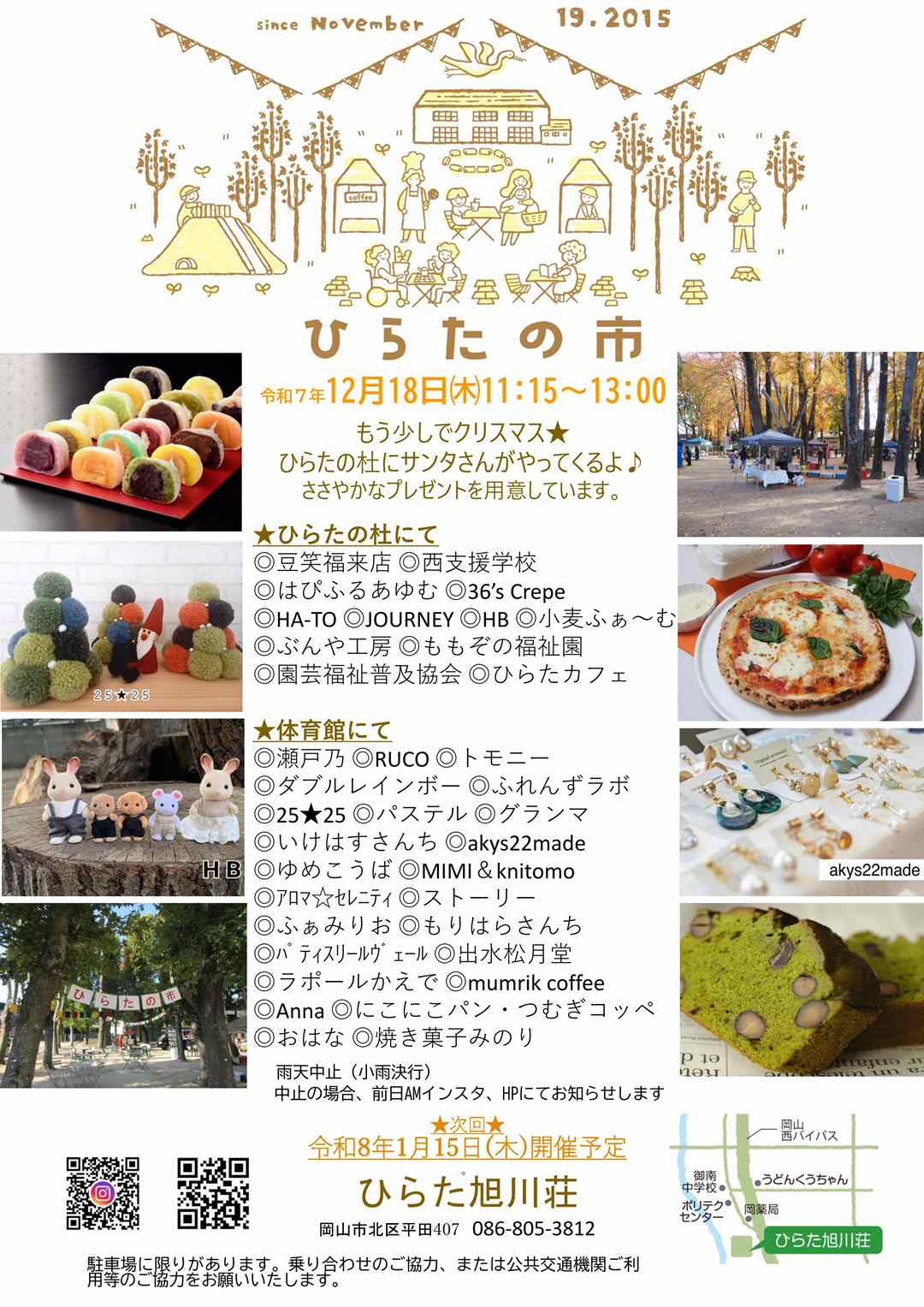 ひらた旭川荘の「ひらたの市」開催 ~12/18~クリスマス~ひらたの杜にサンタさんがやってきます!
