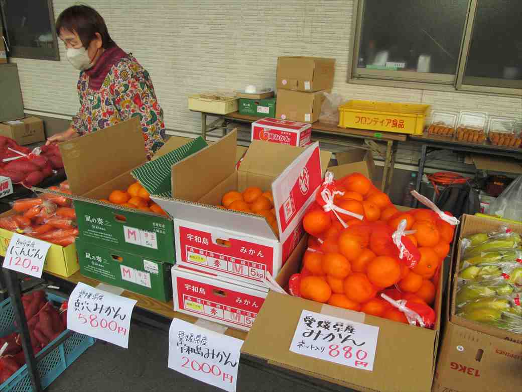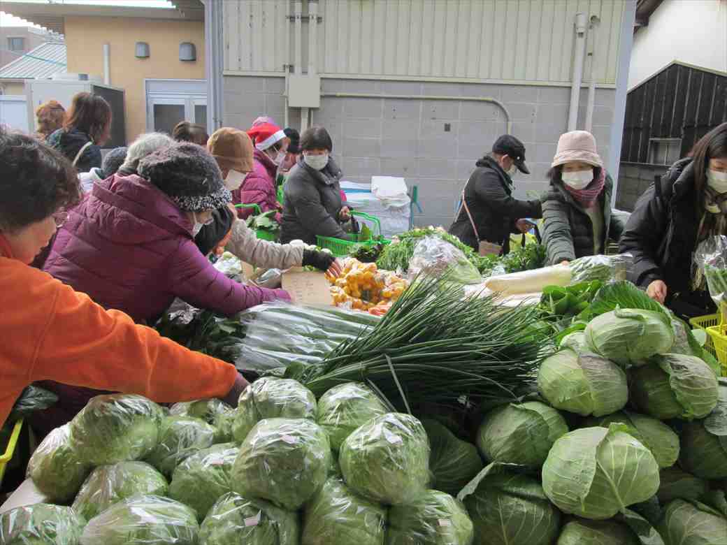朝からとても寒い朝市です。いつもより遅い開催の朝市でしたが、年末に向けての買い物にお客さんは沢山こられました。今日もJAのお母さん方の明るい声で元気をもらい、皆さん笑顔で楽しく買い物をされていました。又、JAの職員さんの優しい気遣いがとてもありがたいです。
