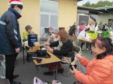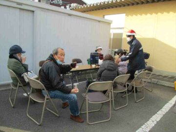 今回はぜんざいが振舞われました。お餅がとてもおいしかったです。皆さん買物の後に暖かいぜんざいをおいしくいただいて、ゆっくりくつろがれていました。