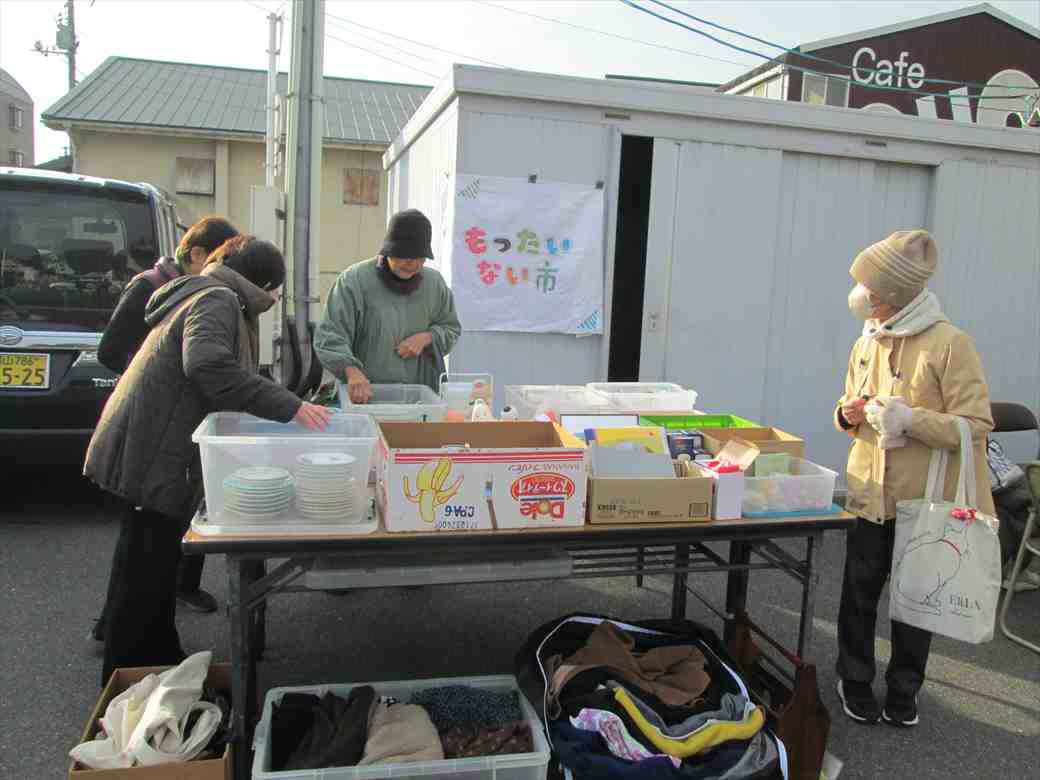 会場の端には「もったいない市」のコーナーが設けられており、婦人部の方がたが、持ち寄られたお皿や茶わん、湯飲みなどが無料で持ち帰りできるようになっており、こちらも人気です。