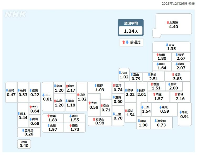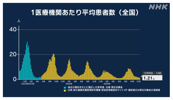 12月15日~12月21日 新型コロナの感染状況・(1医療機関あたり)NHK