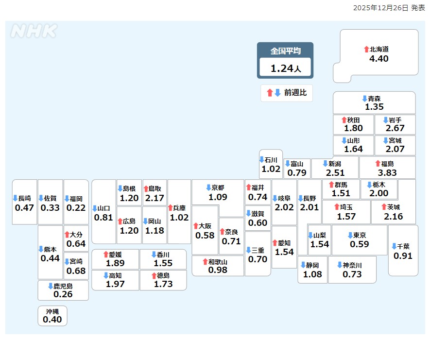 新型コロナウィルス感染症に関する情報リンク〜2025.12.26〜更新129〜定点把握〜全国4,778人岡山59人:全国・岡山県共に微増減!