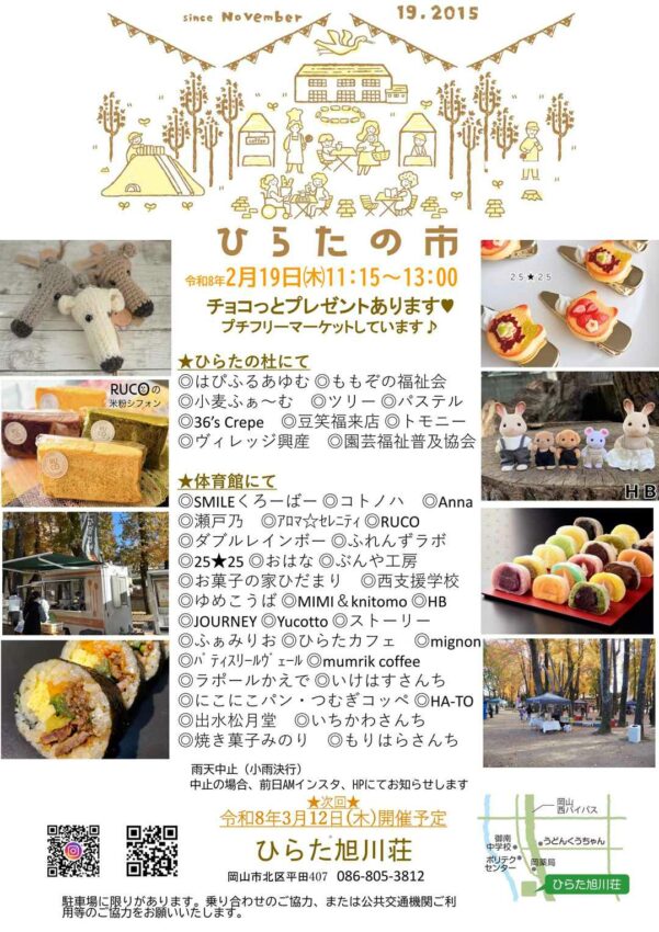 ひらた旭川荘の「ひらたの市」開催案内 ~2/19~チョコとプレゼント&プチフリーマーケットしています!