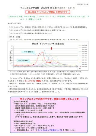 岡山県感染症週報2026年 5週 (1月26日~2月01日)