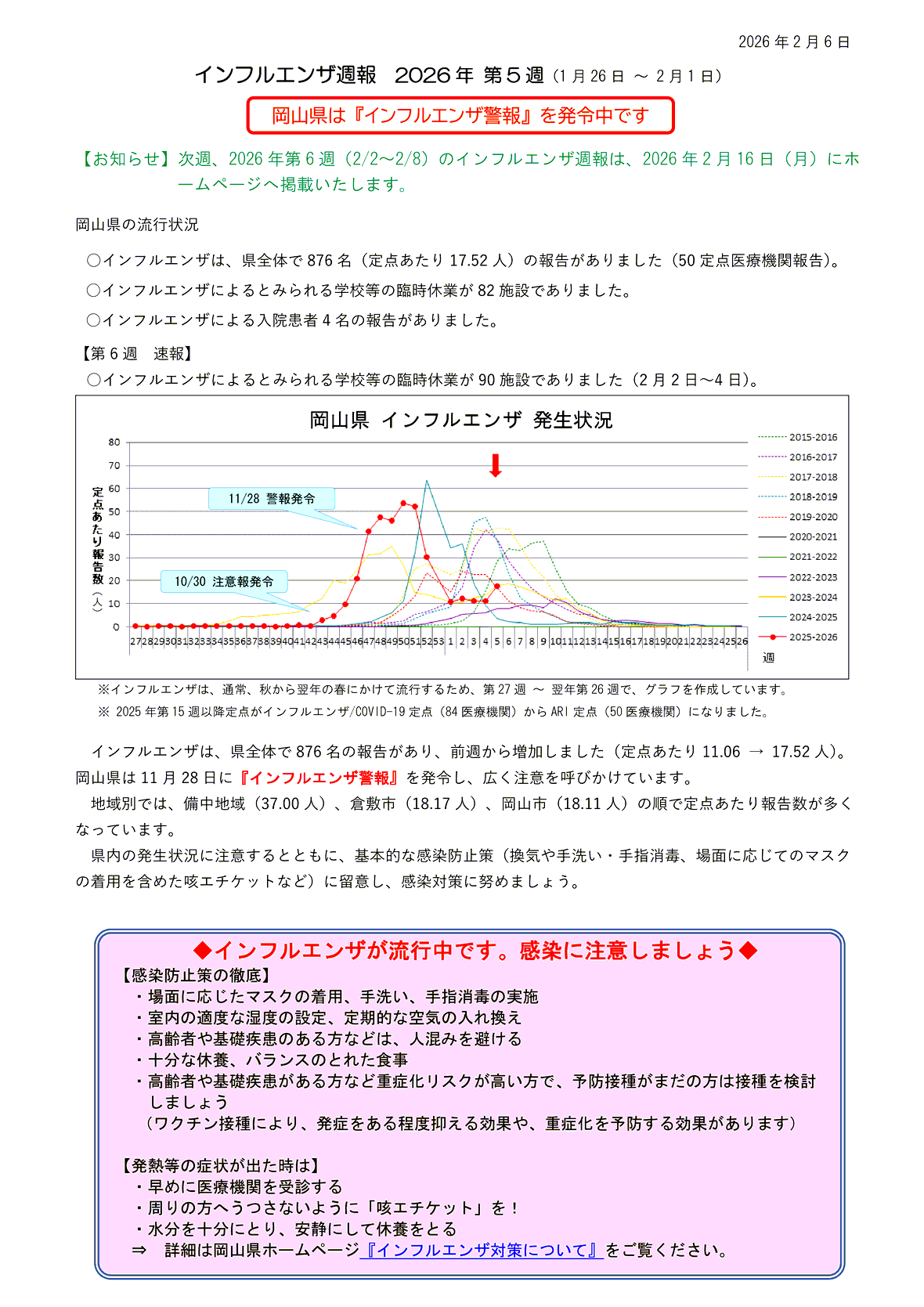 岡山県感染症週報2026年 5週 (1月26日~2月01日)