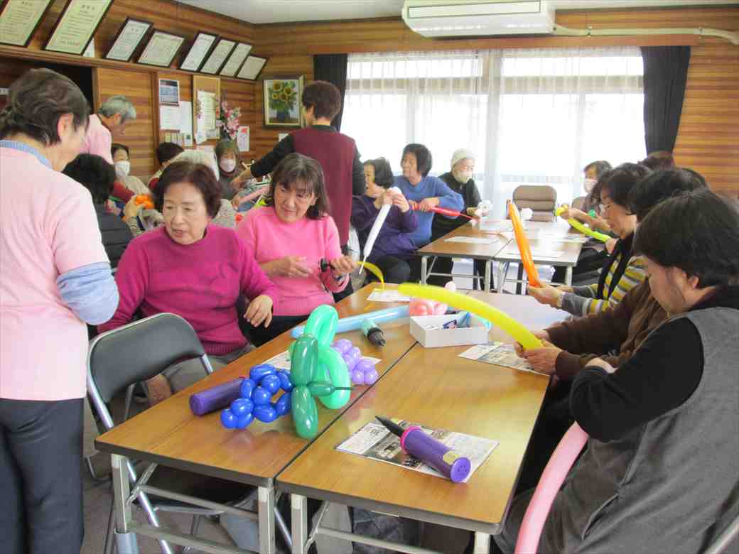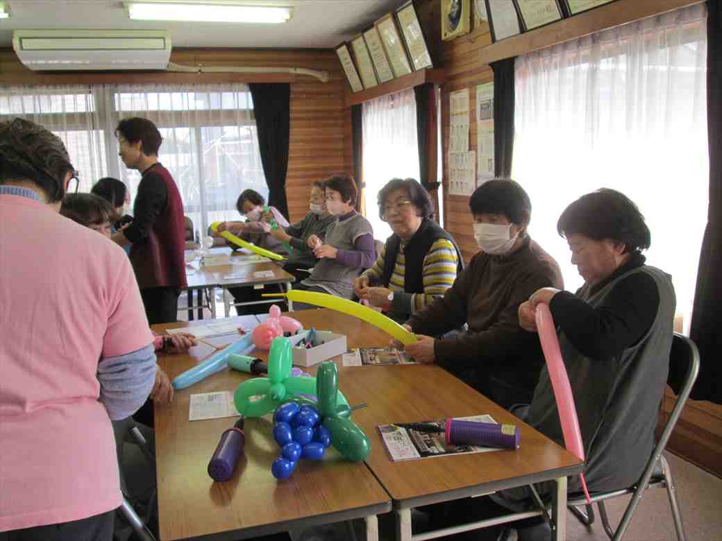 今回は「バルーンアートを楽しみましょう」で、講師として田中律子さん他1名の方により、参加者約24名でバルーンアートを楽しみました。