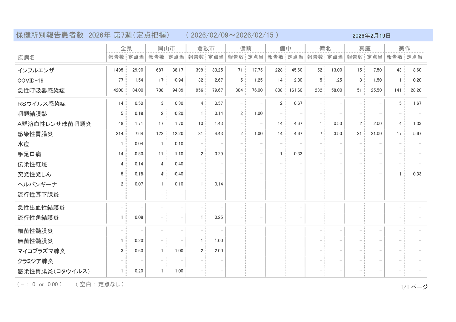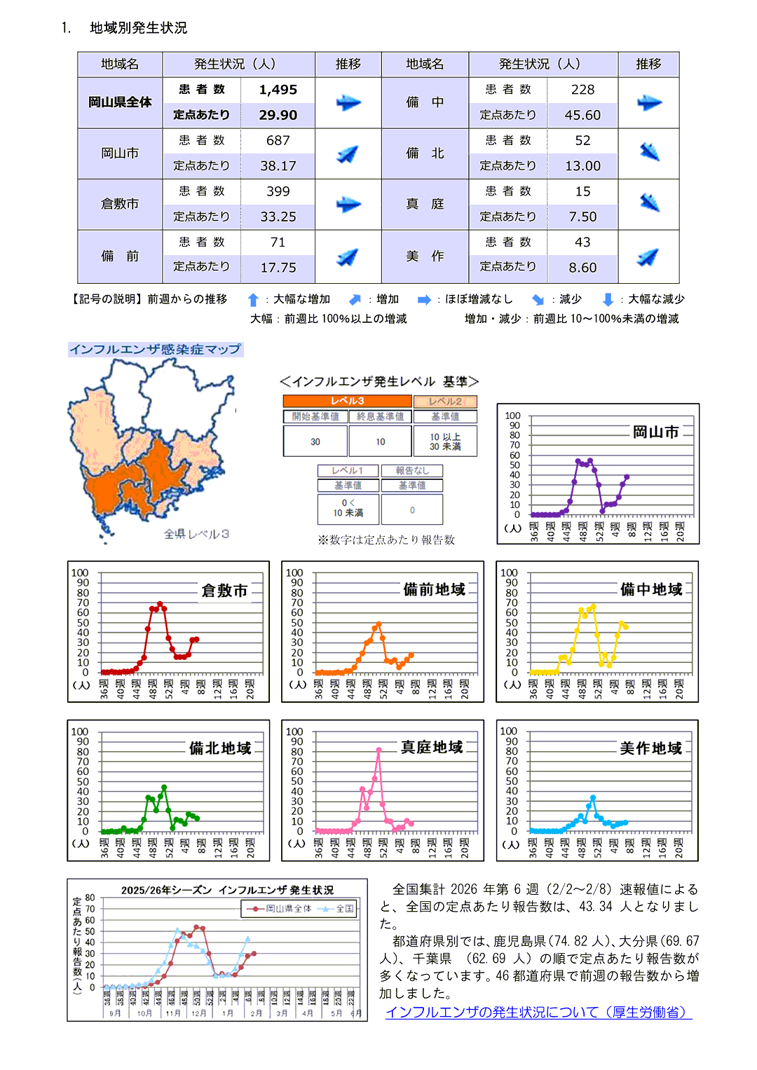 新型コロナウィルス感染症に関する情報リンク〜2026.02.20〜定点把握7週〜全国8,114人岡山77人:全国は減少・岡山県は増加!